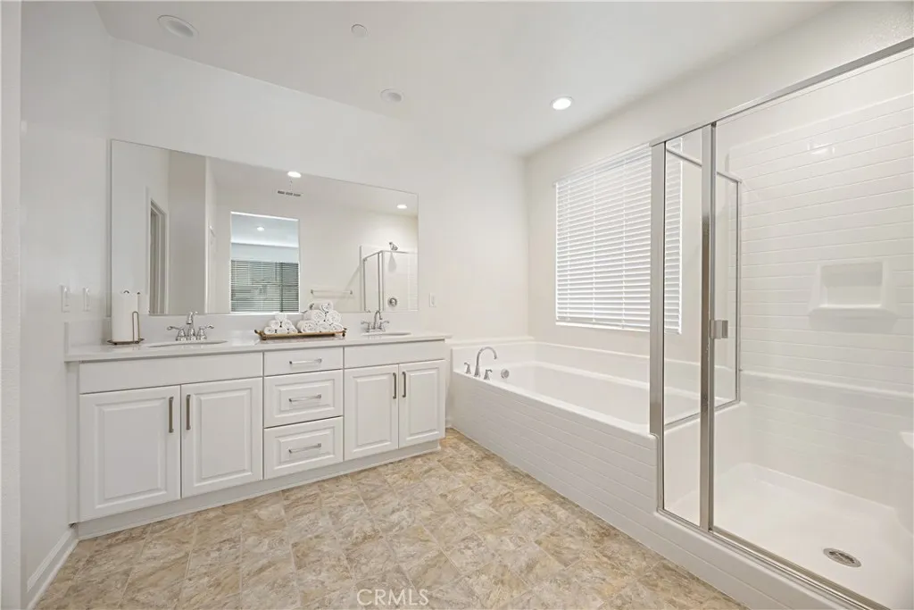 This Gem is a MUST SEE, opportunity to own a nearly new. corner lot, single level, immaculate home at Boulder Creek, on the border of Murrieta & Wildomar, a unique community right next to a Huge Park! The popular and sought after Bellflower floorplan offers 4 spacious bedrooms, 2 full sparkling bathrooms, paid off solar, a 3-car garage and a motivated seller! This home opens up to a welcoming and large Great Room, Casual Dining Space, and sunny, light, bright Kitchen, with views of the mountains. You will love all of the upgraded cabinetry and storage, stainless steel appliance, plus a huge Quartz Island that completes the package. All the bedrooms offer lots of light, letting all the wonderful sunshine in. The Laundry Room is roomy and with linen storage cabinets plus, a convenient HVAC/ mechanical room across the hall. The Primary Bedroom is very large, again, with lots of windows, a spacious walk-in closet, and the bedroom opens up to the generous bathroom space, a spacious linen closet, separate water closet and separate soaking tub and shower, dual vanities at the sink and linen closet. Drought tolerant front and back turf landscaping that offers less maintenance for you and saves on your water bill! Throw away your lawnmower! The builder has a "fit and finish" Warranty in place, a "mechanical" Warranty in place, and a 10-year Structural Warranty. And this Energy Star Certified home also includes the EPA's Indoor Air Plus Certification ensuring increased comfort and monthly cost savings. Low HOA! Incredible peak a boo views of the Santa Rosa and San Jacinto Mountains w