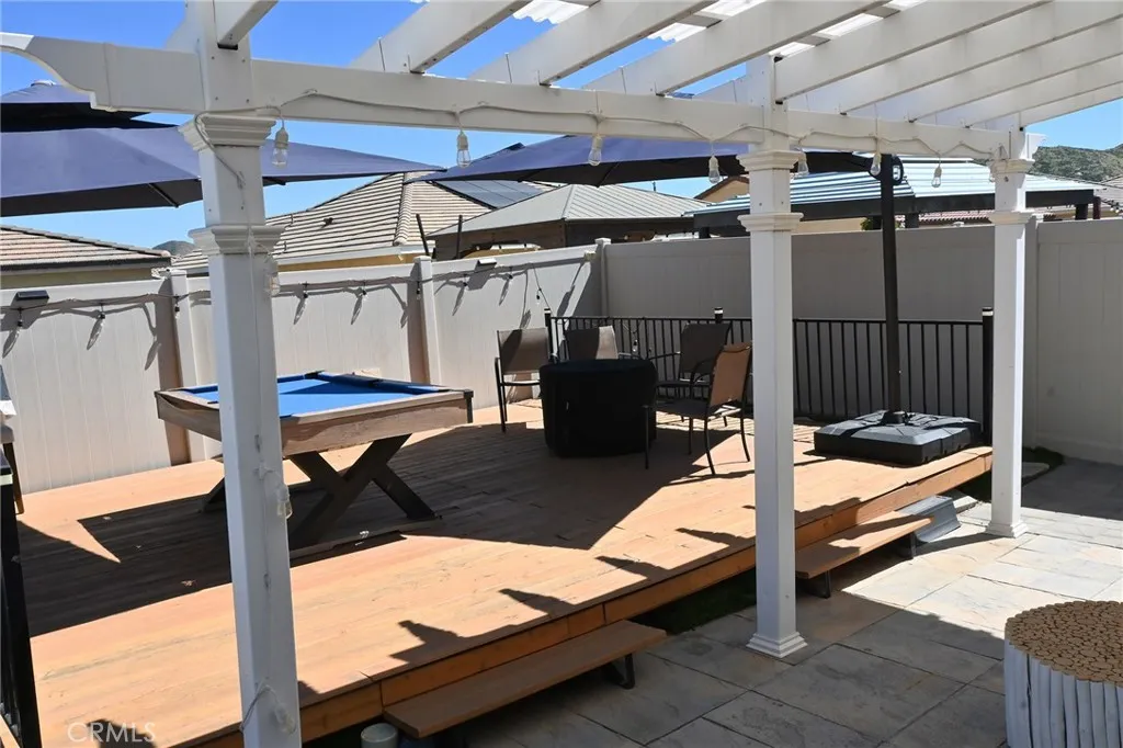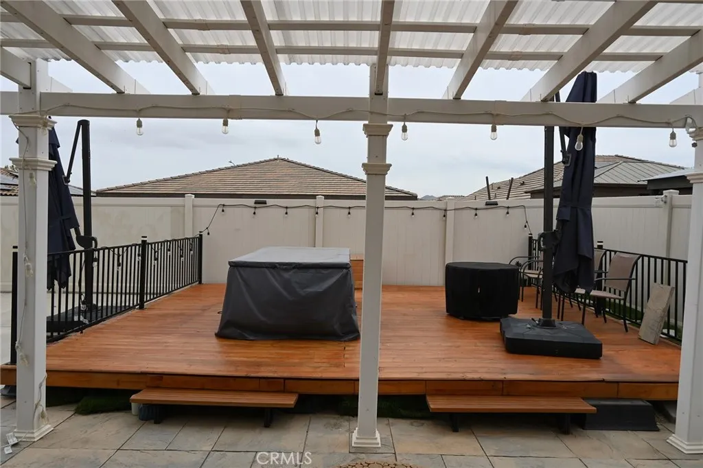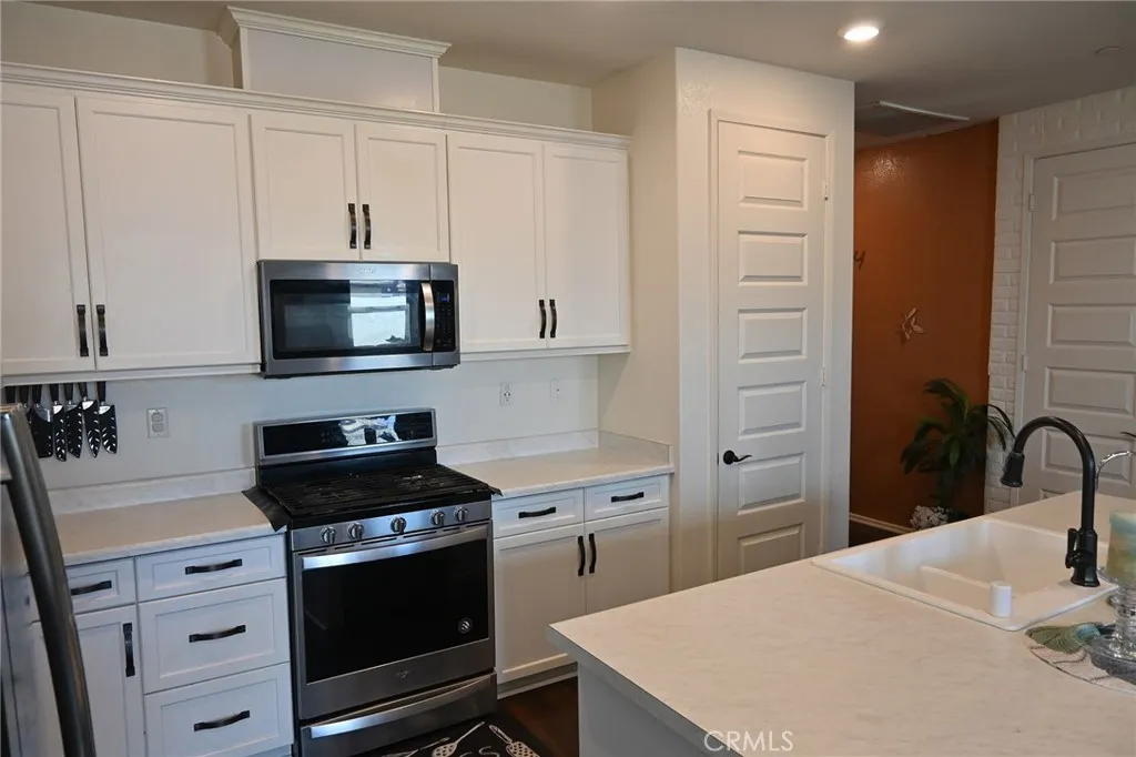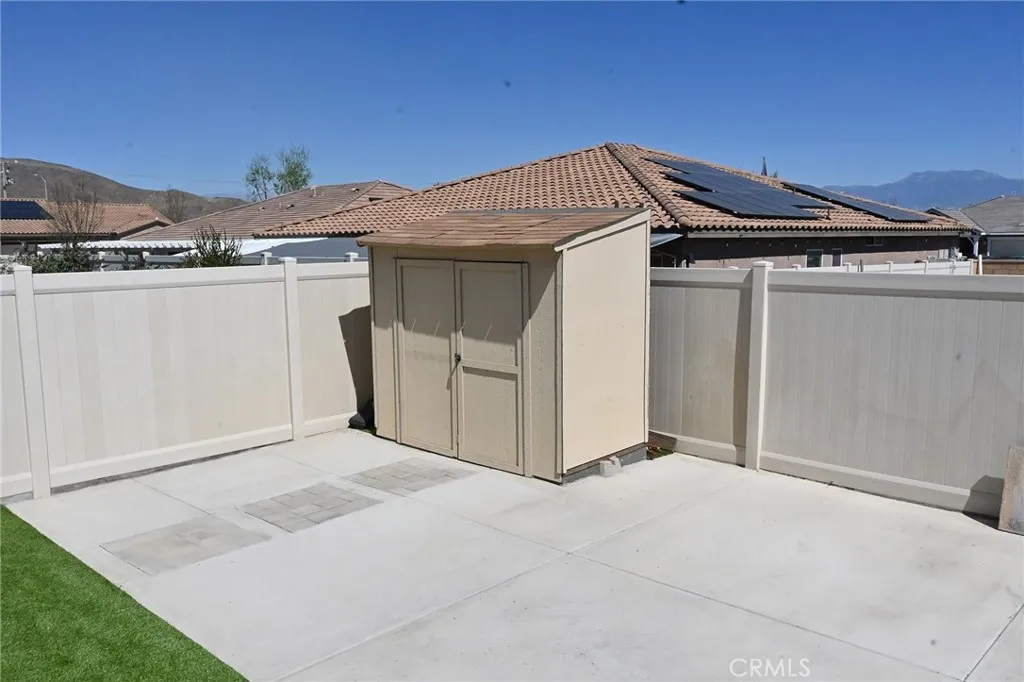 Wonderful, beautifully maintained and upgraded single story home built in 2019 located in a beautiful Winchester neighborhood. This 3-bedroom, 2-bathroom residence offers an open and functional floor plan that in which the great room flows into a modern kitchen featuring white cabinetry, high-definition laminate countertops, stainless steel appliances, and a large center islandideal for everyday living and entertaining. The private primary suite includes a walk-in closet and an on-suite bath. Additional bedrooms provide flexibility for guests. Enjoy a 7.1 home theater system with Klipsch speakers. Energy efficient features include a 21kW solar system that produces approximately 32kw and central HVAC. The property also offers an attached two car garage with an EV outlet and low maintenance landscaping with artificial turf front and back yards. Double sliding doors open to the backyard, creating seamless indoor-outdoor living with a built-in deck, perfect for outdoor entertaining. Solar panels with a transferrable lease. This marvelous home is move in ready and a fantastic opportunity. Located near schools, parks, shopping, commuter routes, and a short drive to Temecula wine country or Diamond Valley Lake.