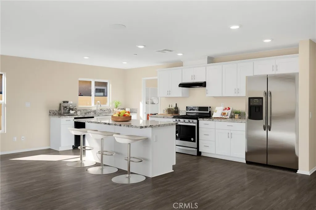 Welcome to this charming 3-bedroom, 2-bathroom Spanish-style home in the heart of Winchester. This beautifully maintained single-story residence offers 1,751 sq. ft. of thoughtfully designed living space. Step inside to a spacious open-concept great room ideal for entertaining, featuring stylish gray luxury vinyl plank flooring in the main living areas and plush carpet in the bedrooms for added comfort. The modern kitchen features white thermofoil cabinets, sleek gray granite countertops, and stainless steel appliances, creating a bright and functional space for cooking and gathering. The primary suite serves as a peaceful retreat with a large walk-in closet and a private en-suite bathroom. Additional highlights include recently installed epoxy flooring in the garage, adding durability and a clean, polished look. The home is also perfectly situated approximately 15 miles from the Temecula wineries, making weekend getaways and wine tasting just a short drive away. This home blends comfort, style, and convenience in a prime Winchester location
