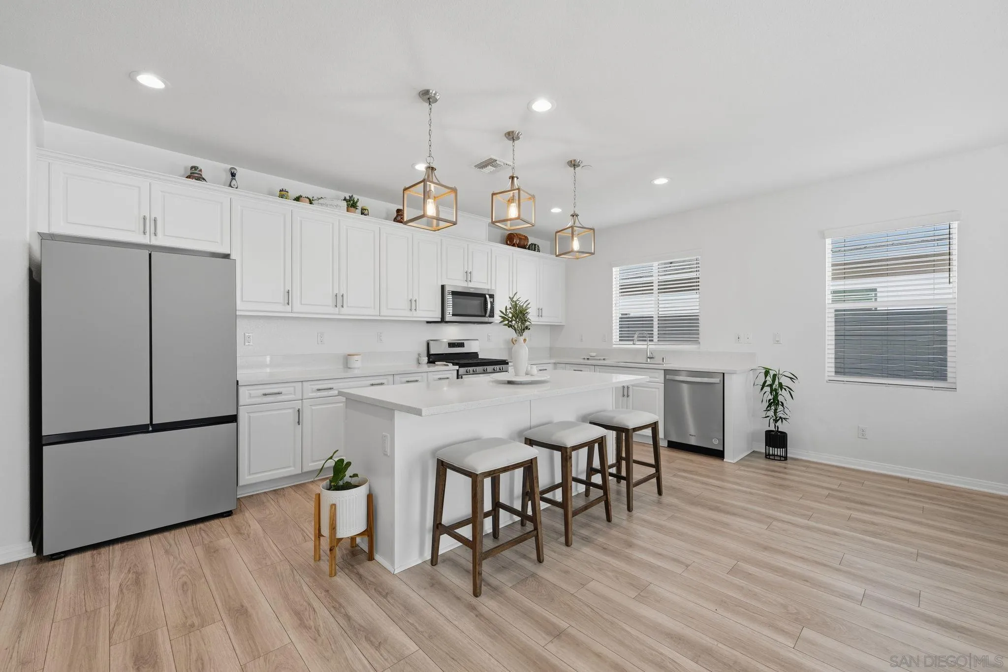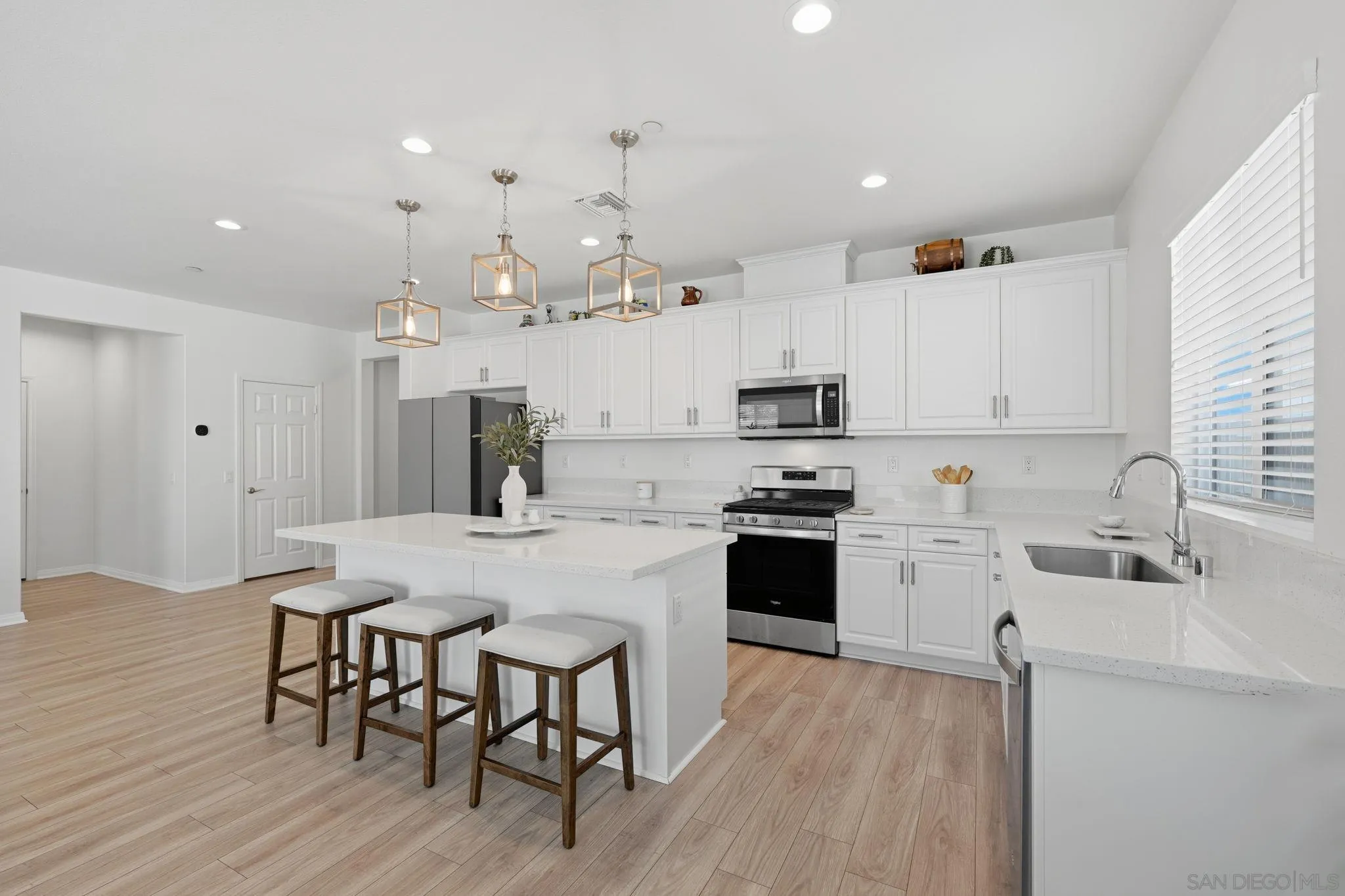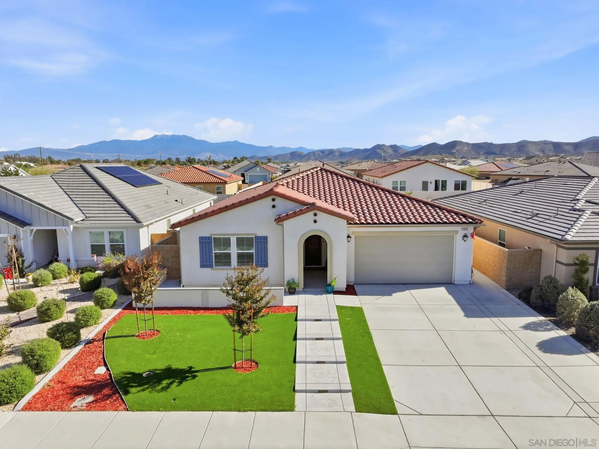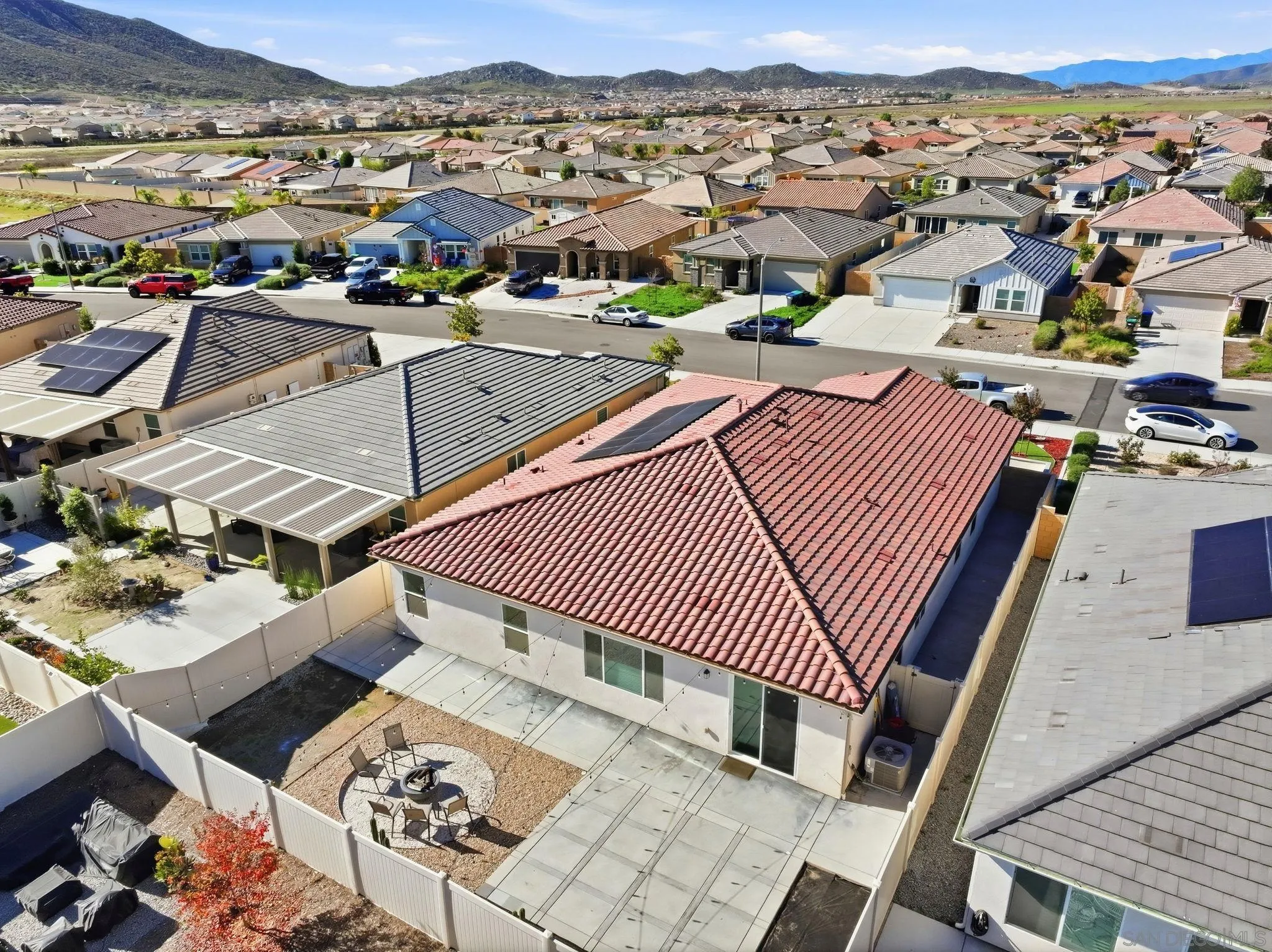 This immaculate single-story home blends comfort, style, and ease in a quiet, friendly community. Low-maintenance landscaping sets the tone, while owned solar panels and a whole-house fan keep energy costs down and everyday living effortless. No HOA! Inside, a bright and open living area welcomes you with tall ceilings and an inviting sense of space. The expansive kitchen is a true highlight, featuring a center island, modern cabinetry, sleek quartz counters, and a walk-in pantry, perfect for both everyday cooking and entertaining. A large dining area flows seamlessly to the private backyard, offering a blank canvas ready for your custom touches. A dedicated office provides the ideal spot for working from home, and the separate laundry room with built-in storage adds convenience. The generous secondary bedrooms offer comfort for family or guests, while the luxurious primary suite delivers your personal retreat with a spa-inspired bathroom complete with a deep soaking tub, separate shower, dual sinks, and a large walk-in closet. Additional perks include a two-car garage with pristine epoxy flooring. All of this sits just minutes from Diamond Valley Lake, Menifee Towne Center, and the 215 Freeway, bringing recreation, dining, and easy commuting right to your doorstep.