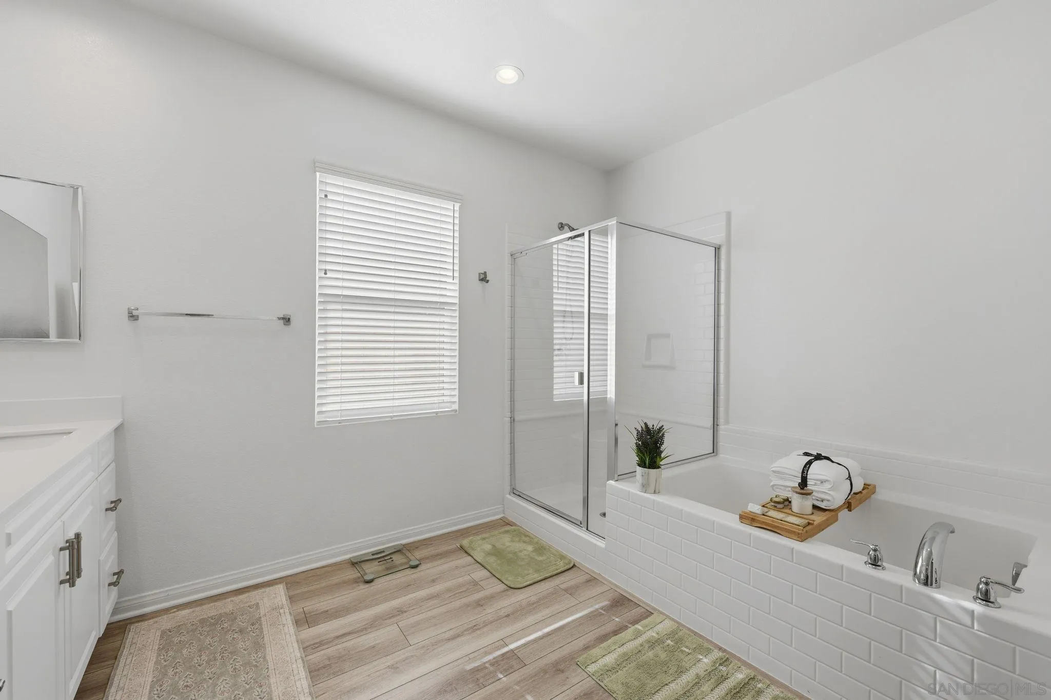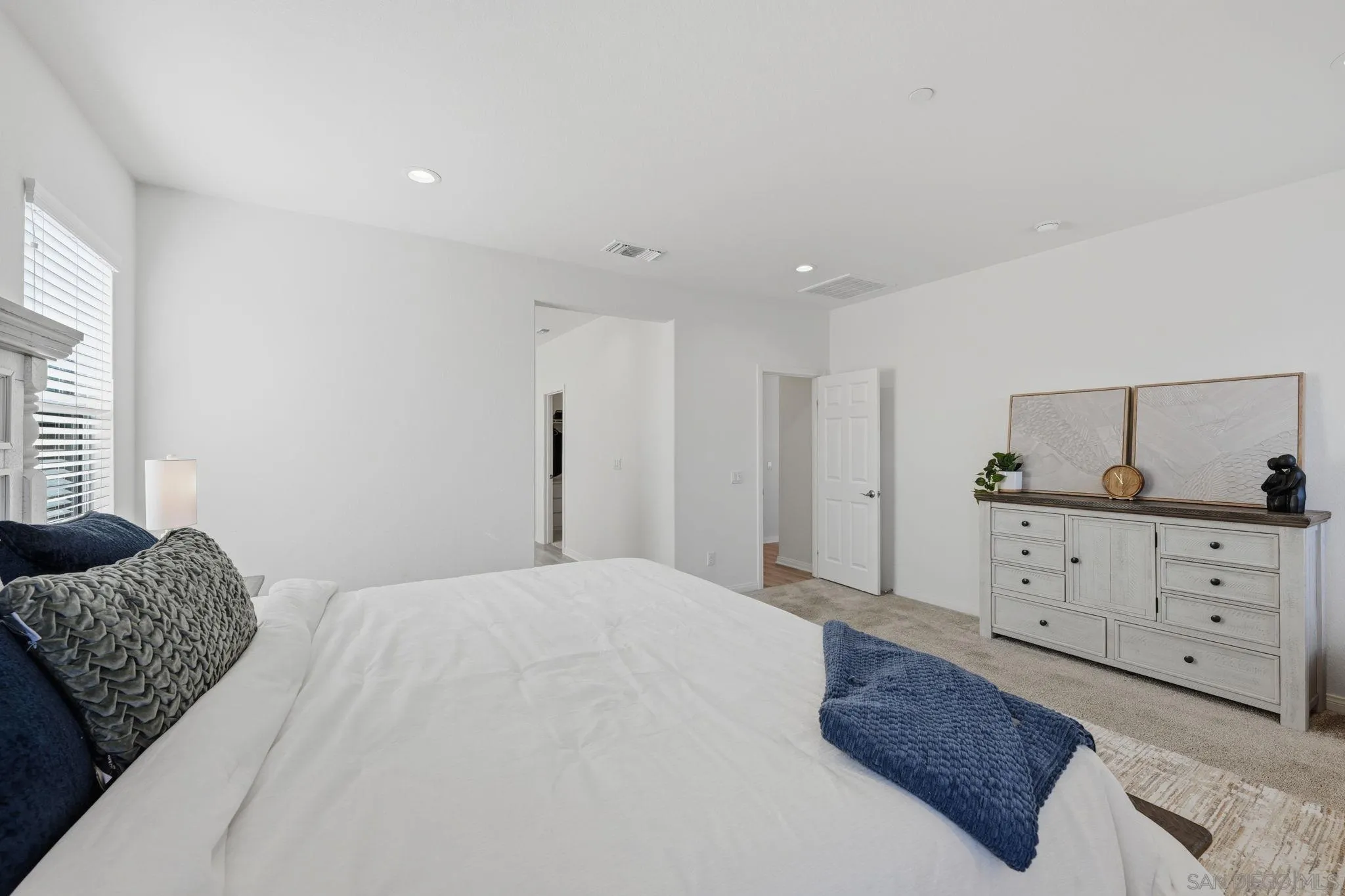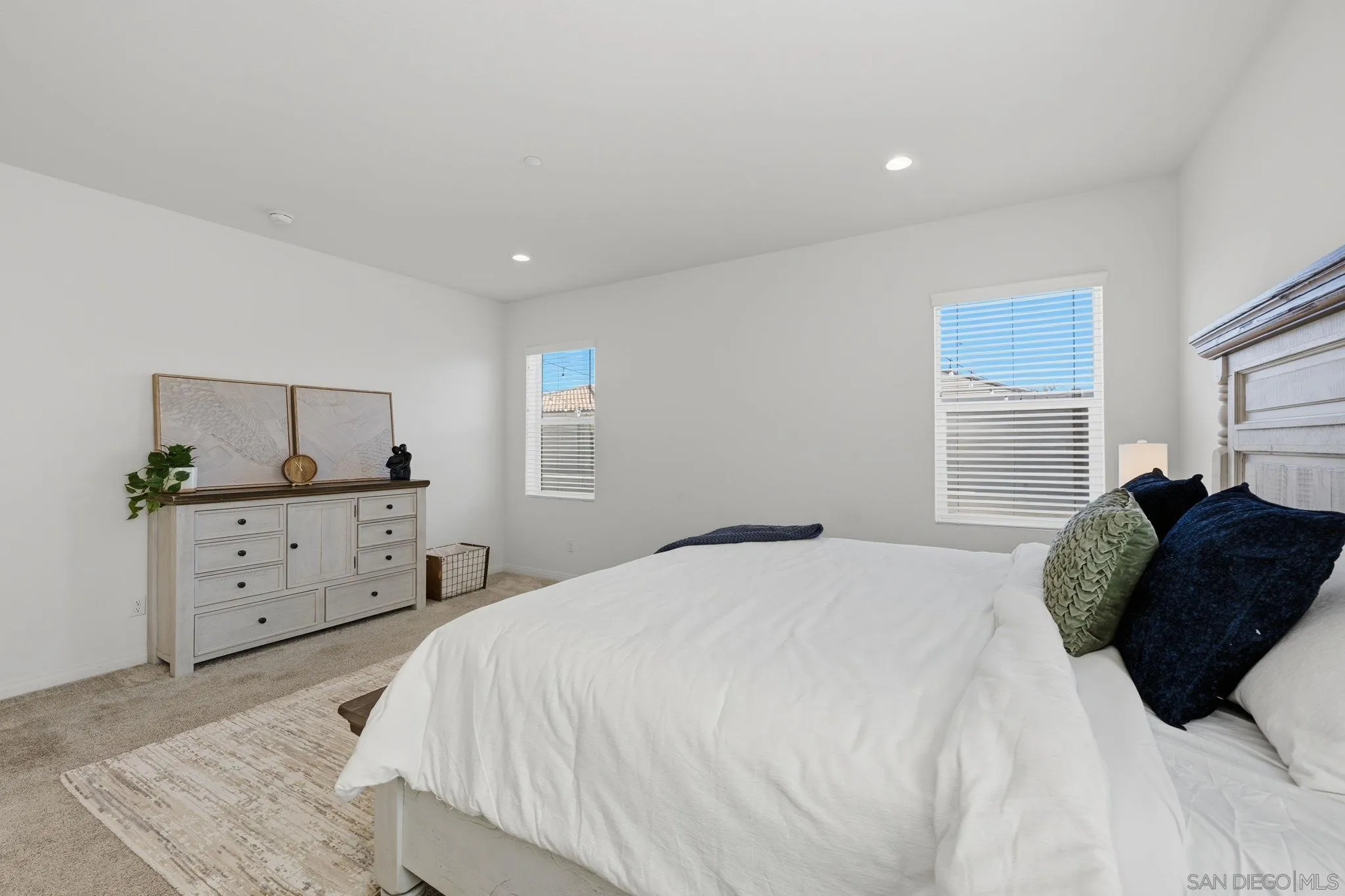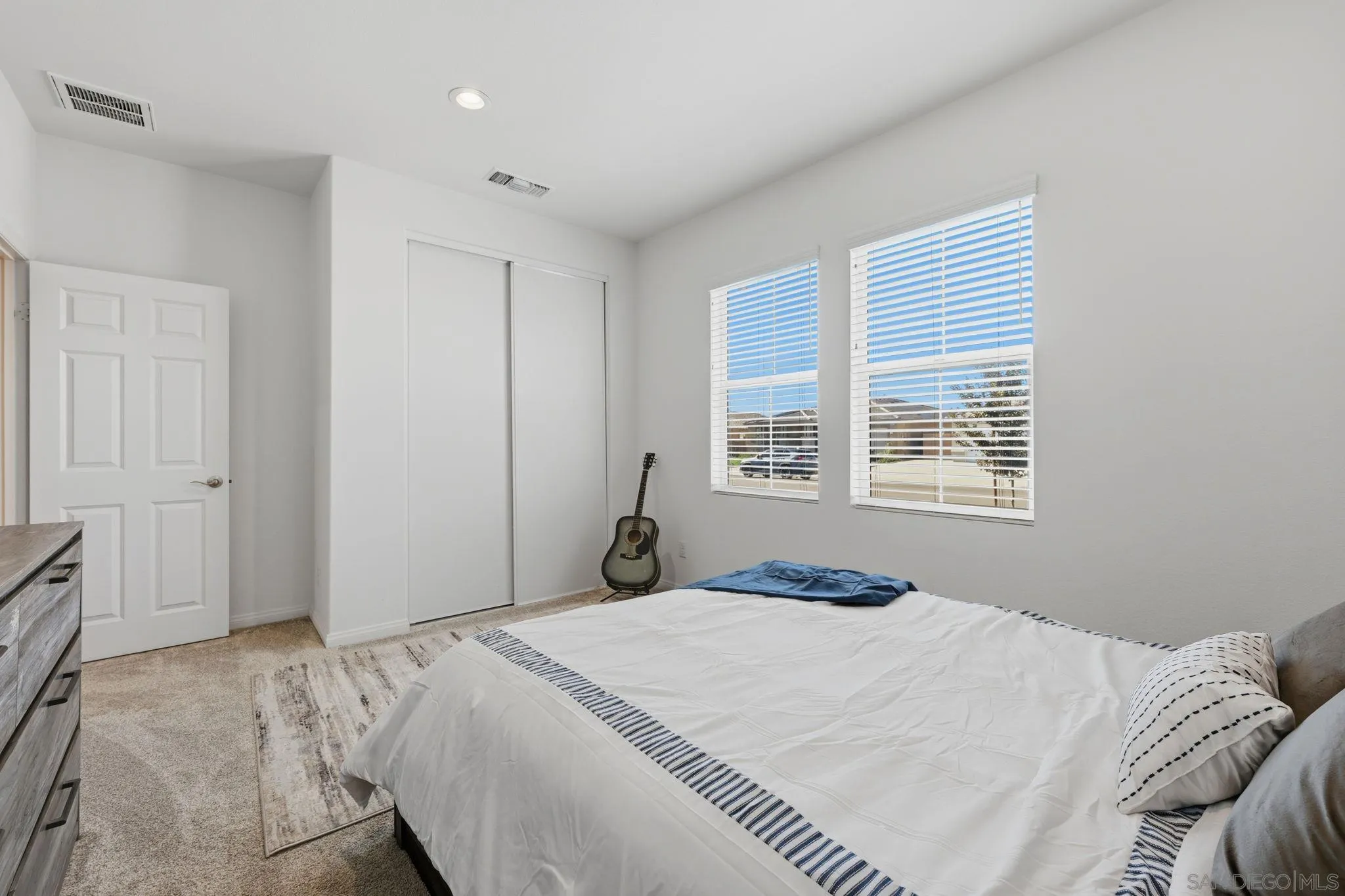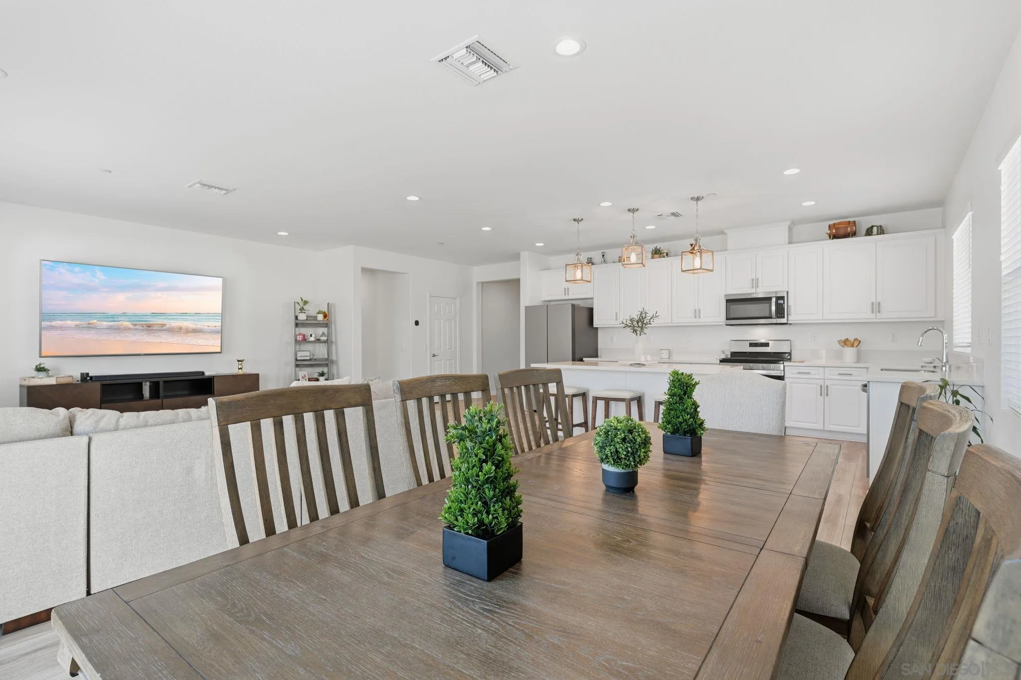 This immaculate single-story home blends comfort, style, and ease in a quiet, friendly community. Low-maintenance landscaping sets the tone, while owned solar panels and a whole-house fan keep energy costs down and everyday living effortless. No HOA! Inside, a bright and open living area welcomes you with tall ceilings and an inviting sense of space. The expansive kitchen is a true highlight, featuring a center island, modern cabinetry, sleek quartz counters, and a walk-in pantry, perfect for both everyday cooking and entertaining. A large dining area flows seamlessly to the private backyard, offering a blank canvas ready for your custom touches. A dedicated office provides the ideal spot for working from home, and the separate laundry room with built-in storage adds convenience. The generous secondary bedrooms offer comfort for family or guests, while the luxurious primary suite delivers your personal retreat with a spa-inspired bathroom complete with a deep soaking tub, separate shower, dual sinks, and a large walk-in closet. Additional perks include a two-car garage with pristine epoxy flooring. All of this sits just minutes from Diamond Valley Lake, Menifee Towne Center, and the 215 Freeway, bringing recreation, dining, and easy commuting right to your doorstep.