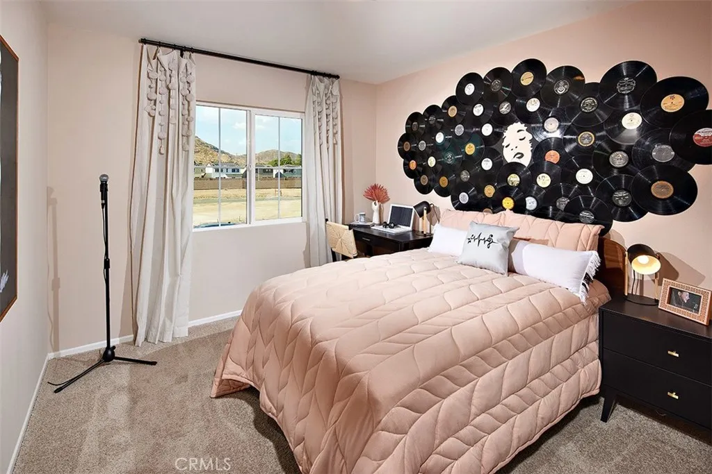 This 2,384 square foot model home has a downstairs bedroom and full bathroom. The home has an open-concept floor plan with a Great room, dining area, and an island kitchen with built-in stainless steel appliances including a 4-door matching refrigerator, granite countertops, and a pantry closet. Upstairs is the primary bedroom with an ensuite and walk-in closet, 3 additional bedrooms, full bathroom, a large loft, and laundry room with a washer and dryer included. This model home has custom light fixtures and wall colors throughout and designer flooring. This home has Smart Home technology, solar panels installed, and a 2-car garage pre-plumbed for an electric car. The home is also fully irrigated and landscaped in the front yard. This home is anticipated to be ready to move in February 2026. Solar is included in the price of the home.
