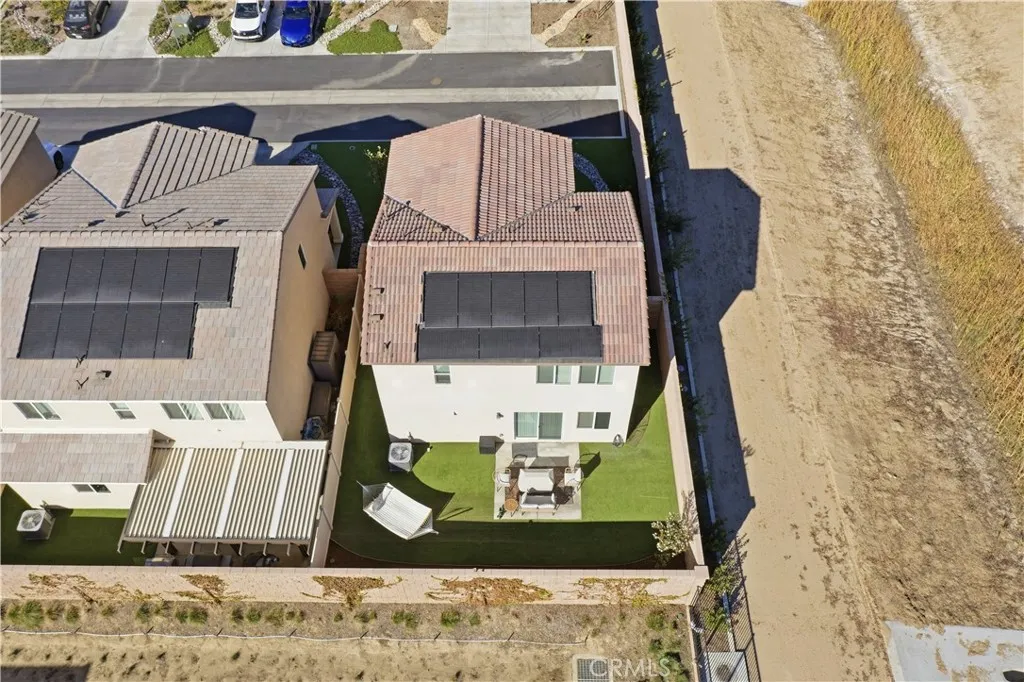 Welcome to your new home in the heart of Winchester at Pradera Place! This stunning newly built 3-bedroom, 2.5-bath residence offers the perfect blend of modern comfort, energy efficiency, and Southern California charm. Step inside to discover a bright, open-concept living area filled with natural light, stylish finishes, and plenty of room to entertain. The spacious kitchen boasts sleek granite countertops, stainless steel appliances, and a large center island that has a built in two-top table attached. Upstairs, youll find three generous bedrooms, including a luxurious primary suite complete with a walk-in closet and a private en-suite bathroom featuring dual sinks and a large walk-in shower. Enjoy low-maintenance living with turf landscaping in both the front and backyard, offering year-round greenery and easy upkeep. Plus, the fully paid-off solar system helps keep your energy bills low while reducing your environmental footprint. Additional highlights include a two-car garage, energy-efficient upgrades, and a great community park. Conveniently located near shopping, dining, and freeway access, this Winchester gem has everything youve been looking forand more!