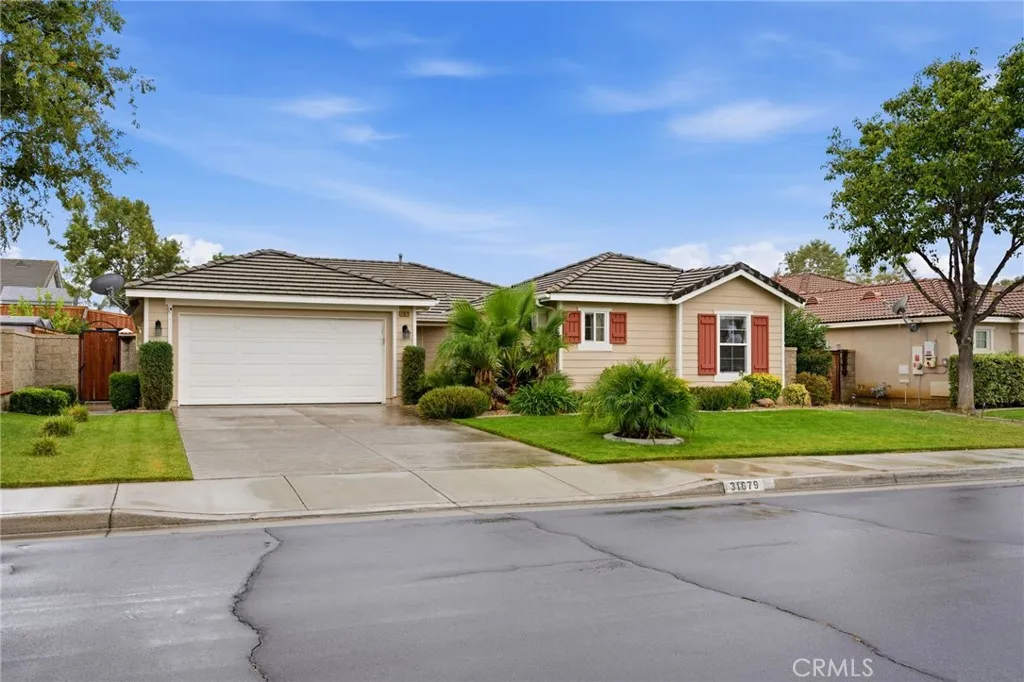 Welcome to your dream single-story pool home nestled in a peaceful cul-de-sac in one of Winchesters most sought-after neighborhoods! This rare gem checks every box with PAID-OFF SOLAR, a fully remodeled kitchen, a resort-style backyard, extremely low annual HOA, Temecula Unified Schools and LOW TAXES the perfect combination of luxury, comfort, and value. This home has beautiful curb appeal with a long driveway and past the front porch area once you step inside you'll find an open floor plan featuring upgraded LVP flooring, elegant California shutters, and spacious living areas designed for modern living. The redesigned chefs kitchen boasts quartz countertops, ample cabinets, stainless steel appliances, a large peninsula island with bar seating, and seamless flow to the great room ideal for entertaining. There's a flex room at the back of the kitchen which is perfect for an office nook or play area or secondary dining option. This home offers three large private bedroom suites, each with its own full en-suite bathroom, providing the ultimate convenience for guests, multigenerational living, or growing families. A separate guest half bath adds even more functionality. Step into your personal backyard paradise complete with a sparkling swimming pool, custom built-in BBQ island, covered lounging areas, and room for weekend gatherings, parties, or quiet evenings under the stars.