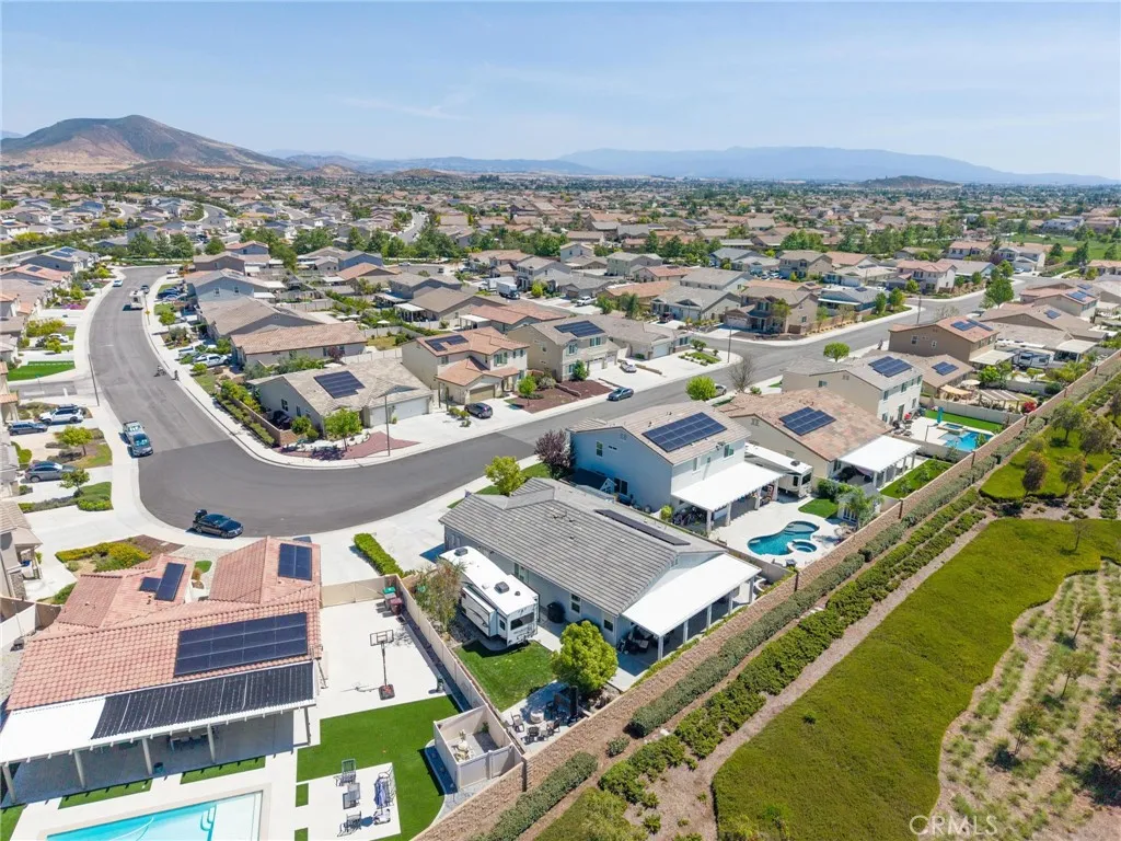 Welcome to 34515 Velvetleaf St. in the highly desirable community of Heritage Ranch of Winchesteroffering nearly 2,100 sq. ft. of beautifully upgraded living space on an almost 8,000 sq. ft. lot with RV parking! This spacious 4-bedroom, 3-bath home (with one bedroom currently configured as a stylish bonus room) showcases a highly functional and open-concept floor plan perfect for both everyday living and entertaining. The stunning kitchen features gorgeous white cabinetry, granite countertops, stainless steel appliances, and seamlessly opens to the expansive living room and dining areacreating a bright and inviting great room feel. Throughout the home, youll find numerous upgrades including custom interior paint, wood-tile flooring, carpeting, and modern light fixturesall reflecting true pride of ownership. The refrigerator, washer, and dryer are all included in the sale, adding convenience and value. Step outside to a beautifully designed backyard complete with stamped concrete, an alumiwood patio cover, above-ground spa, lush landscaping, and sprinkler systemperfect for relaxing or hosting. The backyard also includes a storage shed that will remain with the property. The RV parking is a standout feature, equipped with a 30-amp electrical hookup and its own dump stationideal for RV owners or those needing extra flexibility. The garage is equally well-appointed with overhead storage racks that are included, maximizing functionality and organization. Additionally, the home features a fully paid solar system, offering energy efficiency and long-term savings, along with a low