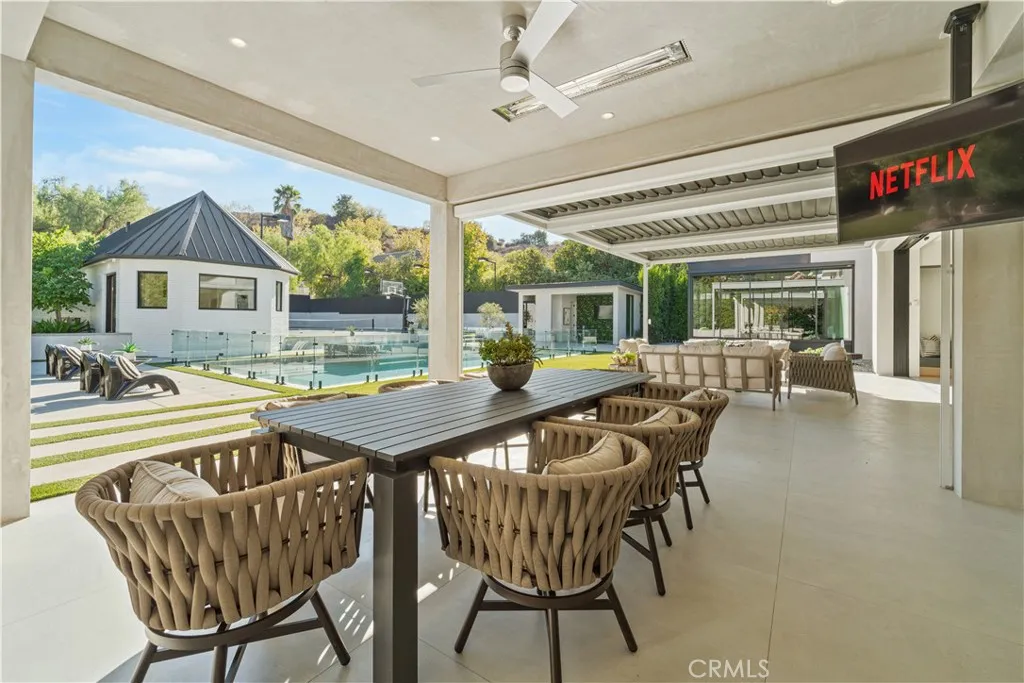 GATED COMMUNITY 7 BEDROOMS,10 BATHROOMS, DETACHED GUESTHOUSE, FULL SIZE SPORT COURT. 2023 REBUILD. STUNNING LUXURY MANSION SOUTH OF VENTURA (24 HOUR ARMED GUARD GATED COMMUNITY), WESTCHESTER COUNTY home to just 160 residences, this showcase estate redefines modern luxury. Set on nearly one acre and completely reimagined down to the studs in 2023 with over $2 million in recent upgrades, this 10,000+ sq. ft. masterpiece offers an unmatched level of privacy, sophistication, and cutting-edge design. Step inside to soaring cathedral ceilings, Custom Designer Chandeliers, dramatic floor-to-ceiling marble fireplaces, and seamless indoor-outdoor living with automatic pocket doors and Lutron smart home automation controlling lights, shades, TVs and premium sound (interior/Exterior) throughout. The residence boasts a state-of-the-art security system with interior/exterior cameras, a Control4 system, and a fully soundproof oversized home theater with, Premium Sound Package, massive Upgraded Projector Screen, and a walkout enclosed patio. The chefs dream kitchen showcases Two 12-foot waterfall islands, a walk-in pantry, 2 Dishwashers, full-size refrigerator & freezer, high-end appliances, and a custom wine display. Upstairs, youll find 5 en-suite bedrooms, each with custom cabinetry and walk-in closets. The primary suite impresses with Custom Fireplace, Sitting Area, 2 oversize walk-in Closets 1 that has its own ELEVATOR an Oversize Spa like bathroom with Huge Rainfall Shower, Separate Tub, Vanity Area, and Walk-out balcony overlooking park like grounds. The amenities continue with two