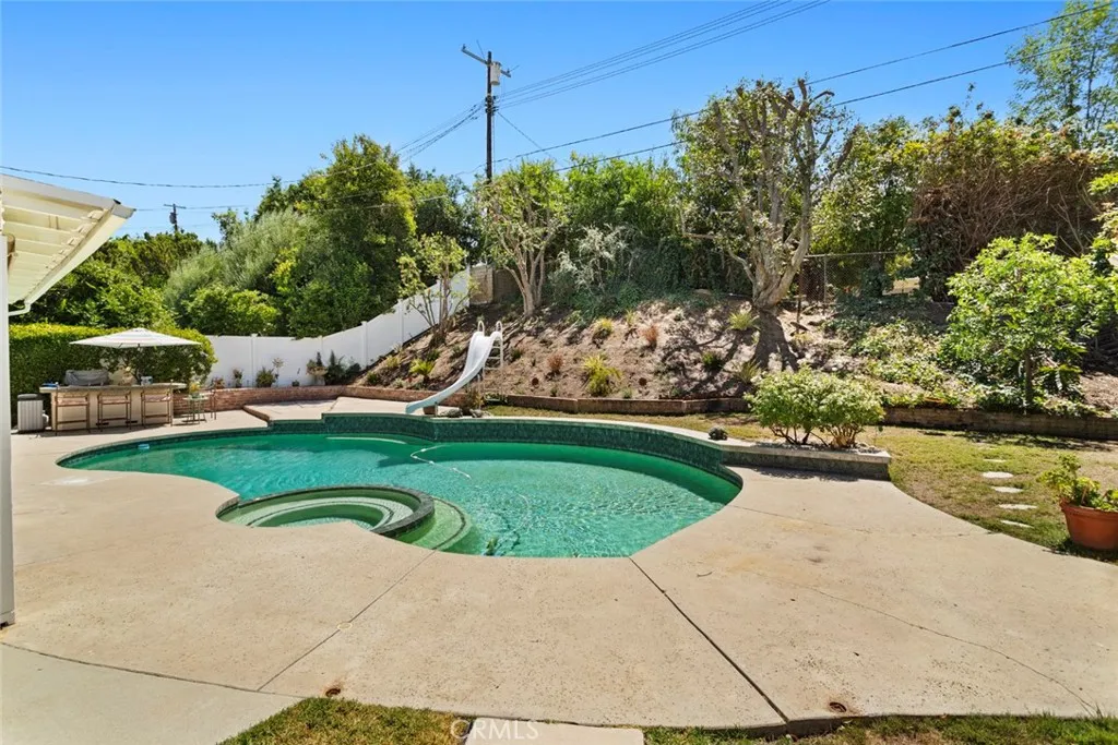 Beautifully updated 5-bedroom, 2.5-bath two-story home where spacious and functional floorplan modern comforts, and incredible outdoor amenities come together at an unbeatable price. The light-filled oversized living room includes wood flooring and a fireplace, opening to a formal dining room and a separate family room. The well-appointed kitchen boasts a large center island and abundant cabinetry. Upstairs offers a generous primary suite with space for a sitting area or office and an updated en-suite bath, plus four additional bedrooms providing excellent flexibility for family, guests, or work-from-home needs. The expansive 10,752 sq. ft. lot is designed for outdoor enjoyment with a sparkling pool, covered patio, large grassy area, and fully equipped outdoor kitchen. Additional features include an attached two-car garage with direct access, indoor laundry, wood shutters, copper plumbing, and a 21-panel solar system installed in 2022 for energy efficiency and cost savings. Zoned for highly regarded schools, including Calabash Charter Academy, Hale Charter Academy, and El Camino Charter High School. exceptional value in a sought-after location.