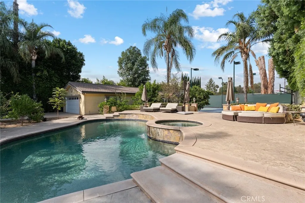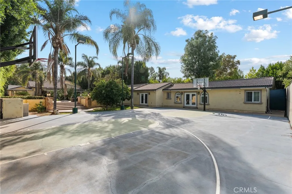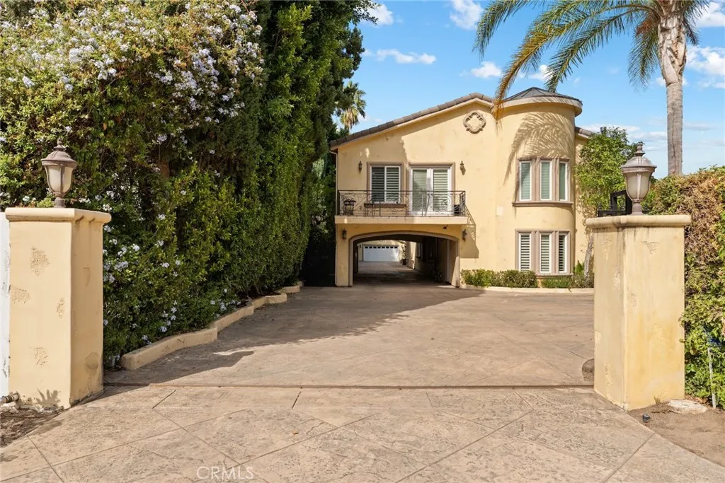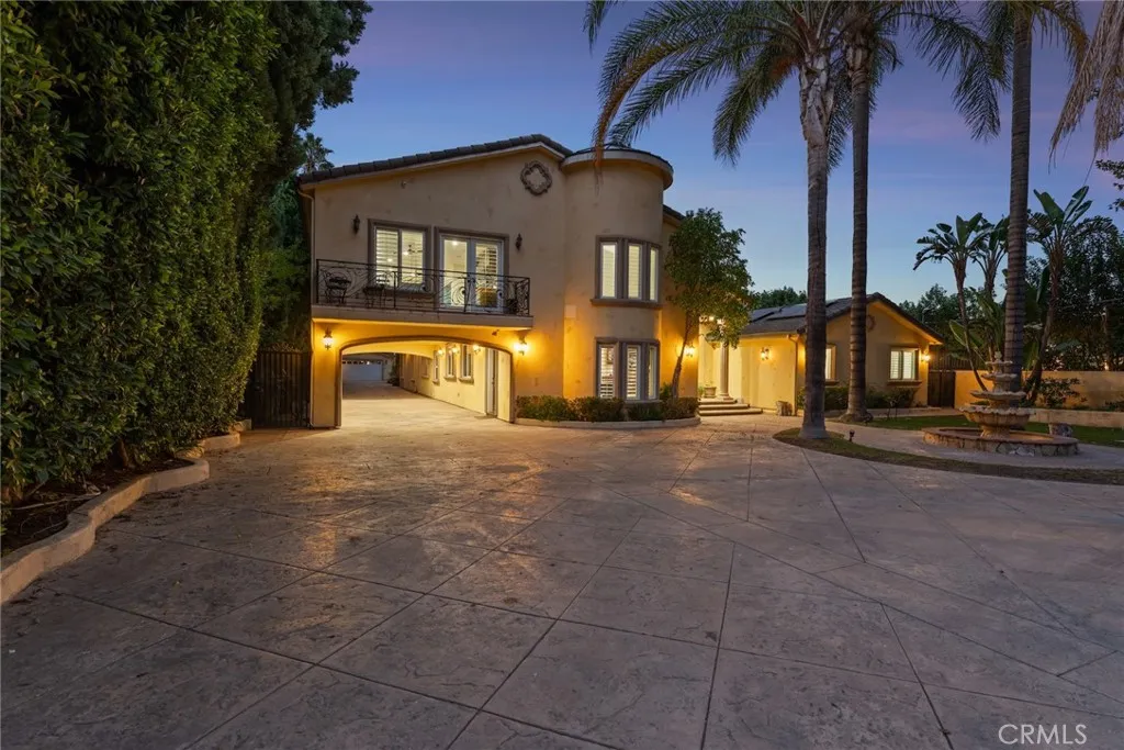 Custom gated Walnut Acres Italian Villa featuring a primarily one level main residence plus a detached oversized guest house situated on an expansive 26,000 SF flat lot. The private estate is secured behind an automatic security gate with separate pedestrian access and lush landscaping including full growth hedging and towering mature palms. The front yard features a sprawling driveway that can accommodate parking for large scale events and RVs/boats with a separate additional long gated driveway that leads to a covered carport and 2-car garage. Step inside to find a completely open concept floor plan with architectural design elements and designer finishes. A massive grand entry foyer with soaring ceiling and skylight basks the space with wonderful natural light. The foyer opens to a large great room with French doors that open to the backyard. Separate sitting and family rooms share a double-sided fireplace and wet bar. The vast chefs kitchen is highlighted by a sushi bar inspired wraparound countertop peninsula and boasts Sub Zero 36 column fridge & freezer and Viking range with double ovens & 6-burner grill + griddle. The formal dining room has built-in storage cabinetry and French doors that open to the yard. A separate living room off the entry features fireplace, built-ins, and a second wet bar. The entire second level is dedicated to a luxurious primary suite featuring an enormous bedroom with sitting room/office, wet bar, fireplace, front & back balconies, large walk-in closet, storage room with laundry hookups, and spa-like bathroom with dual sinks, steam shower,