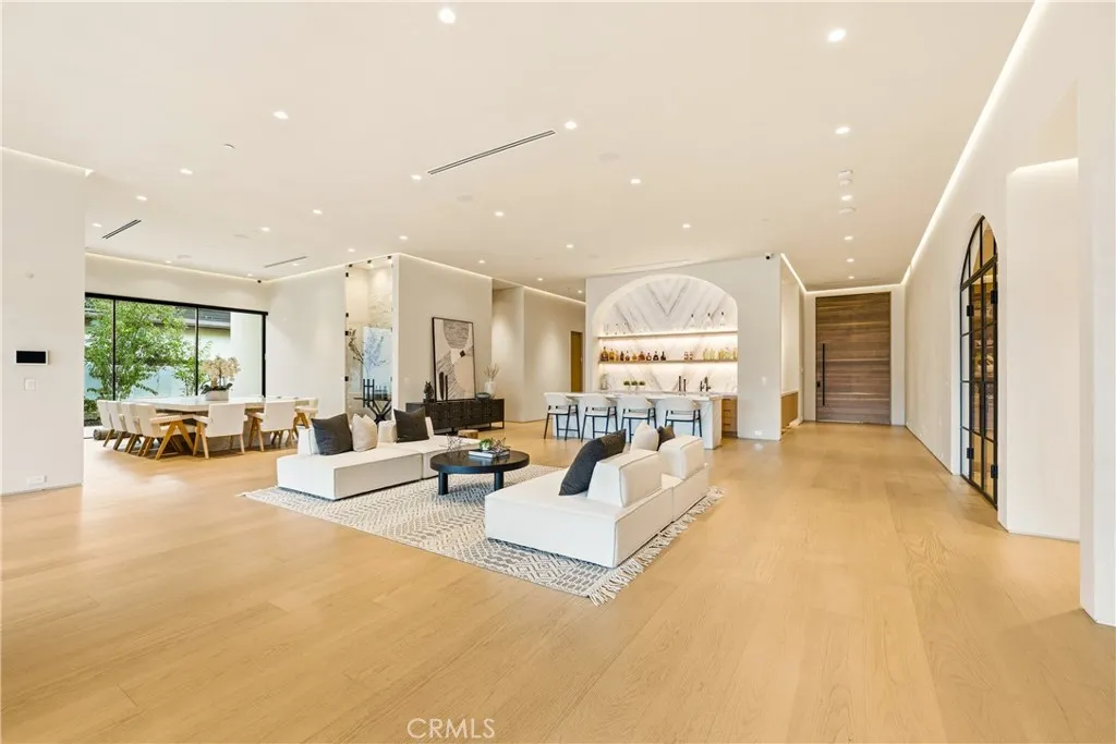 Welcome to this rare architectural masterpiece, perfectly situated in the coveted Walnut Acres neighborhood. From the moment you arrive, the sleek design and pristine landscaping make an unforgettable first impression. Every detail of this fully automated smart home showcases modern innovation and refined luxury. Step inside to discover an interior as breathtaking as the exterior. Plaster walls, designer finishes, and Taj Mahal stone accents blend sophistication with functionality. The home features fully automatic pocket doors that open at the touch of a button, seamlessly connecting indoor and outdoor spaces, along with automated shades throughout for effortless control of light and privacy. The open-concept layout flows into a gourmet kitchen thats a dream for culinary enthusiasts and entertainers. Taj Mahal stone countertops and state-of-the-art appliances set the stage, complemented by a secondary dirty kitchen for additional prep space. A custom Taj Mahal dining table serves as an elegant centerpiece for memorable gatherings. The private master suite is a true oasis, offering a spa-inspired bathroom with an indoor jacuzzi and electronic shower. A mini kitchen adds exceptional convenience and privacy. Additional features include a thoughtfully designed home office and a dedicated playroom, easily adaptable as a recreational space. These versatile rooms enhance the home's functionality and ensure every need is met. Entertainment reaches new heights with a private movie theater and a stunning outdoor environment. The cabanawith a full outdoor kitchen and BBQis ideal for