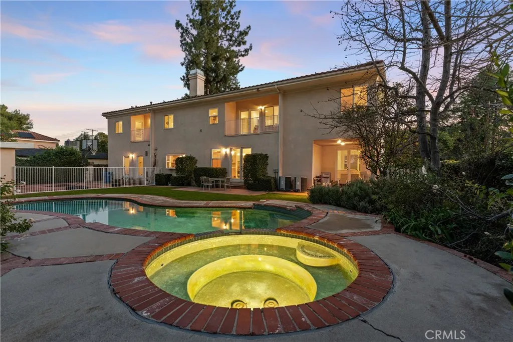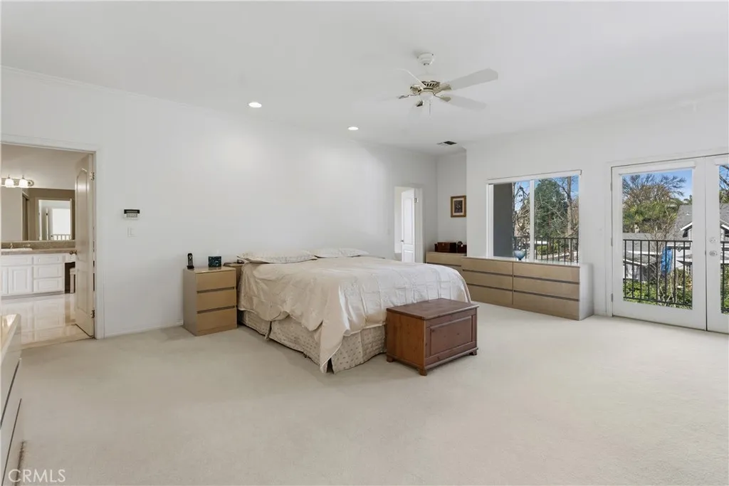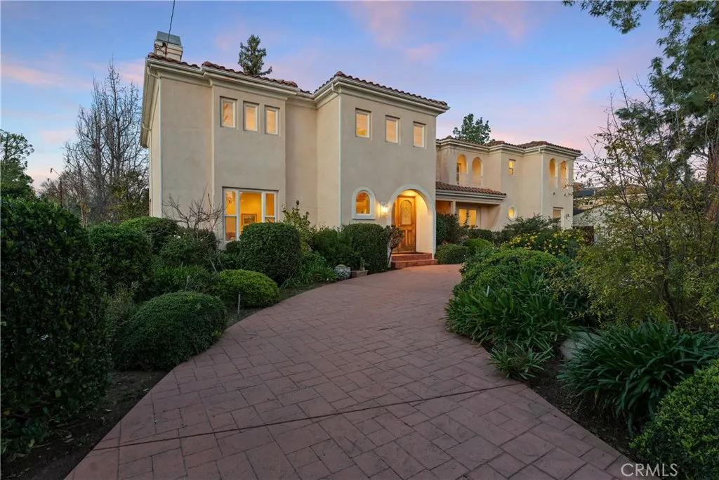Walnut Acres custom built and privately gated traditional estate located on a large 14,500 SF lot with over 5,000 SF of living space offering 7 en-suite bedrooms and 7.5 bathrooms. Offered for the first time on the market, the property boasts impressive curb appeal with 100 feet of frontage featuring double security gates that open to a sweeping circular driveway with rolling front lawn and lush landscaping. A second driveway leads to the detached 3-car garage with the potential to be converted to an ADU. Step inside to find a grand entry foyer with two-story ceiling. The oversized living room has wood mantled fireplace, French doors that open to a covered patio, oversized picture windows, and a separate walk-in wet bar with serving counter and storage. Separate family room has impressive wall-to-wall built-in bookshelves with storage and French doors that open to the backyard. The massive chefs kitchen opens directly to the family room and has large island with prep sink, separate peninsula with breakfast bar seating, stainless appliances including a Viking range with double ovens and 6-burner stove + grill, stone counters, and separate breakfast room. The spacious formal dining room has soaring two-story ceiling, French doors that open to the exterior, and direct kitchen access. Additional large bonus room offers ideal flex space for office/theater/den. The first floor also has a laundry room and guest powder bathroom. There are a total of 7 well appointed bedroom suites, each with their own private bathrooms, custom closets, and several have their own balconies. There ar