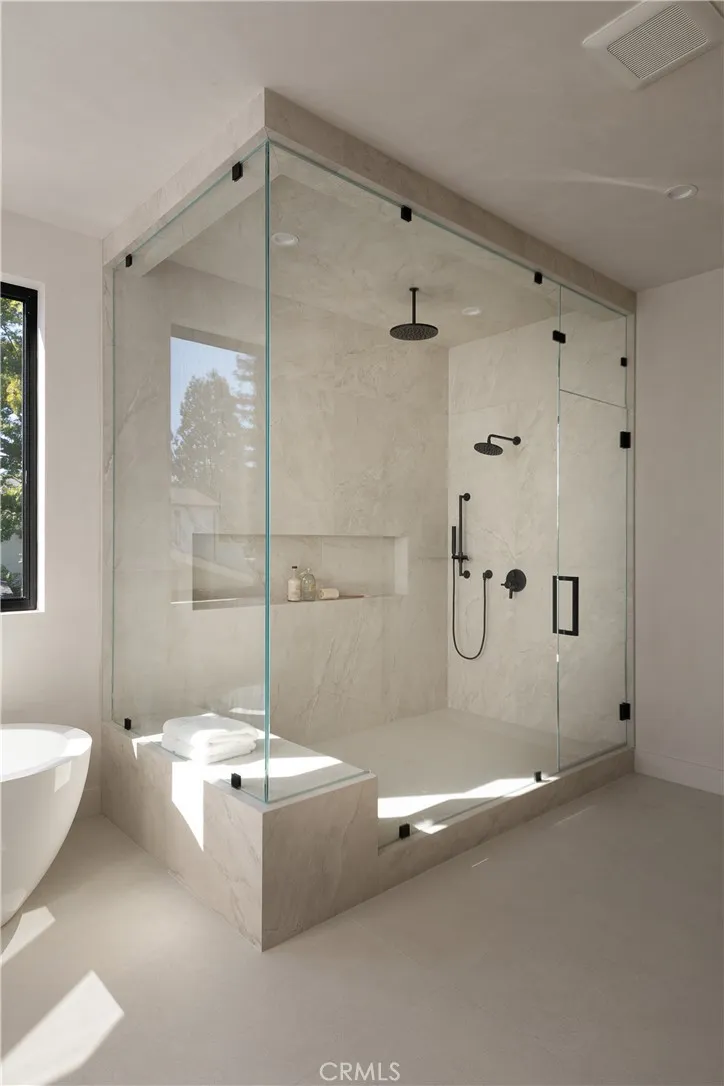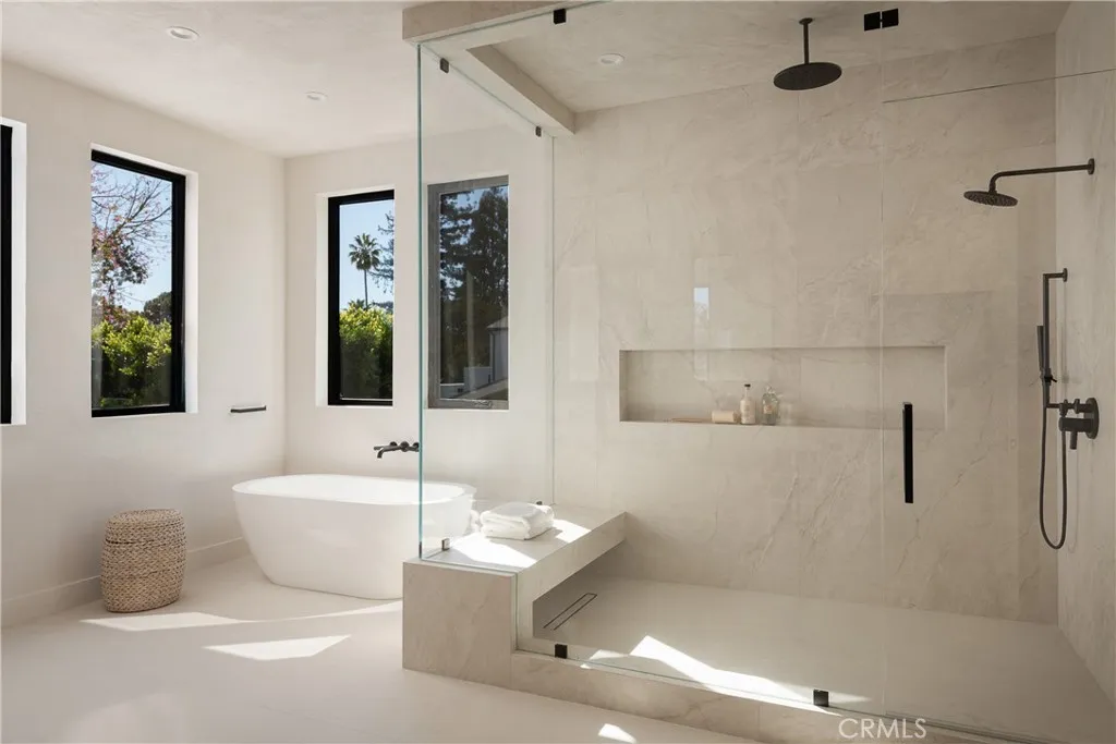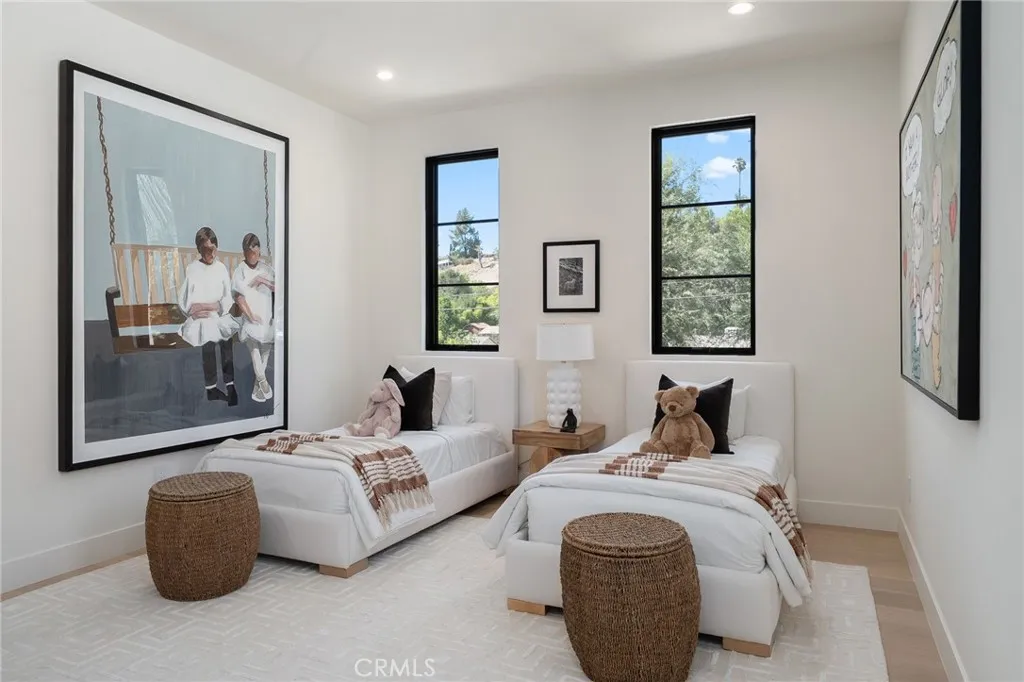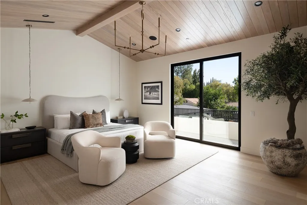Welcome to this exquisite gated estate located in Woodland Hills, Walnut Acres, on one of the quietest streets. This recently built luxury property offers 6,418 square feet of living space on an 18,338-square-foot lot, making it ideal for entertaining. The main residence spans 5,369 square feet and includes five bedrooms, each with its own en-suite bathroom, plus an additional guest bathroom. Other spaces include an office, a theater room, and convenient laundry facilities on both levels. Enjoy stunning balcony views from both the primary suite and the family room. Additionally, the property features an 830-square-foot guest house with a private large bedroom, en-suite bathroom, full kitchen, and laundry facilities. The expansive backyard perfect for entertaining includes a separate detached 219-square-foot gym, sauna, sports court, pickleball court, and a covered outdoor barbecue area, ideal for large gatherings.