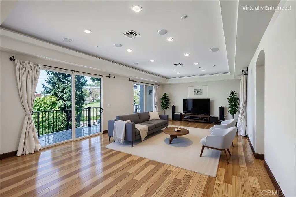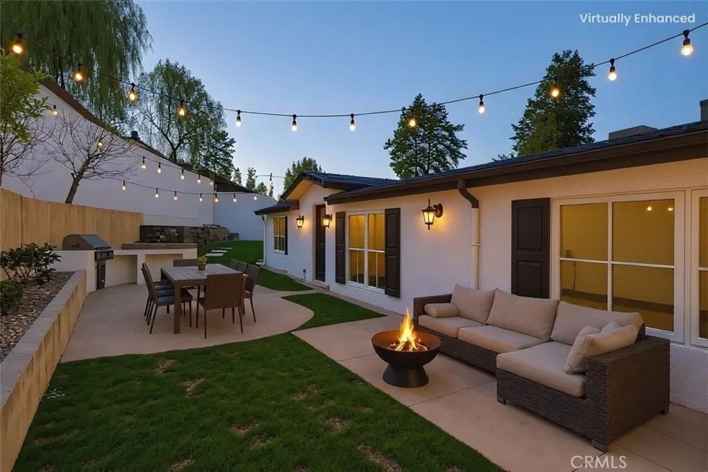 This remarkable 4-bedroom, 5.5-bathroom residence offers an exceptional combination of style, comfort, and practicality, with the added option to convert a room into a fifth bedroom. Situated in a serene neighborhood of Woodland Hills, this thoughtfully designed home features expansive living areas, premium finishes, and a seamless flow between indoor and outdoor spaces. Upon entering, youll immediately notice the open-concept floor plan, highlighted by bamboo flooring, soaring ceilings, and recessed lighting, creating a refined and inviting atmosphere. The gourmet kitchen is a true standout, offering custom wood cabinetry, granite countertops, a spacious center island, two full-sized sinks, top-of-the-line stainless steel appliances (including a Viking range), a built-in wine fridge, and two refrigeratorsideal for both everyday living and entertaining. Designed with versatility in mind, the home also includes a family/media room equipped with a full sound and speaker system, as well as a dedicated playroom or home office to accommodate your unique needs. The primary suite serves as a peaceful retreat, featuring vaulted ceilings, pendant lighting, a cozy sitting area with a fireplace, and a luxurious en-suite bathroom with a dual vanity, soaking tub, a steam-equipped glass-enclosed rainfall shower, and high-end finishes. Step outside to your private backyard oasis, complete with a built-in spa Jacuzzi, featuring a full spa experience with a heater and bubble jets. The backyard also boasts a BBQ area, beautifully landscaped surroundings, and mature fruit treescreating the pe