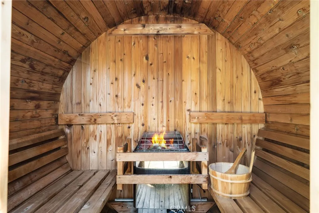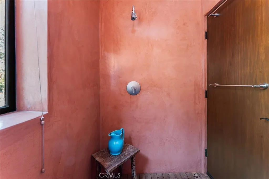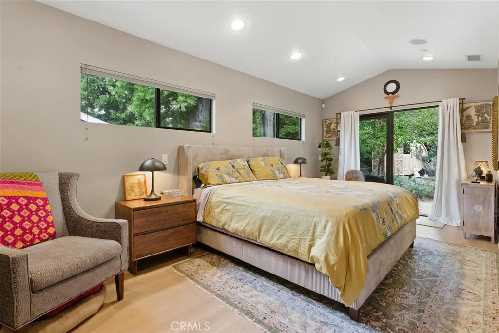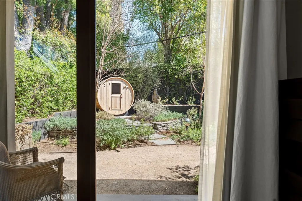 Immaculate California contemporary showstopper with separate studio/office/bonus room! Complete ground up reconstruction designed by Busch Design Build, renowned for award-winning green and sustainable architecture. Upon entering the property, you are greeted by a handmade front door that opens to a private courtyard with swimming pool. Step inside the home to find reimagined interiors featuring pitched ceilings, built-in speakers, Milgard aluminum windows, custom shades for optimal light and privacy, and brand new flooring. The spacious living room has floor to ceiling built-in bookshelves, smooth stucco fireplace, and is highlighted by an expansive Fleetwood sliding pocket door with full screen that opens directly over the swimming pool artfully combining indoor/outdoor living. Frosted glass pocket doors open off the living room to a separate guest bedroom/office with built-in desk, storage closets, & spa-like bathroom with teak wood flooring & terracotta smooth stucco walls. The oversized kitchen overlooks the backyard and features custom soft close cabinets, pantry pullout storage, stone counters, and stainless appliances. A dining space off the kitchen with a sliding glass door leads to an outdoor patio perfect for alfresco dining. The primary suite is truly a sanctuary featuring French doors that open onto a private patio overlooking the backyard, a large walk-in closet with custom built-ins, and a luxurious en-suite bathroom with one-of-a-kind Mongolian vanities, Victoria + Albert bath tub, and unique walk-in shower with green onyx tiling. This artistic retreat boast