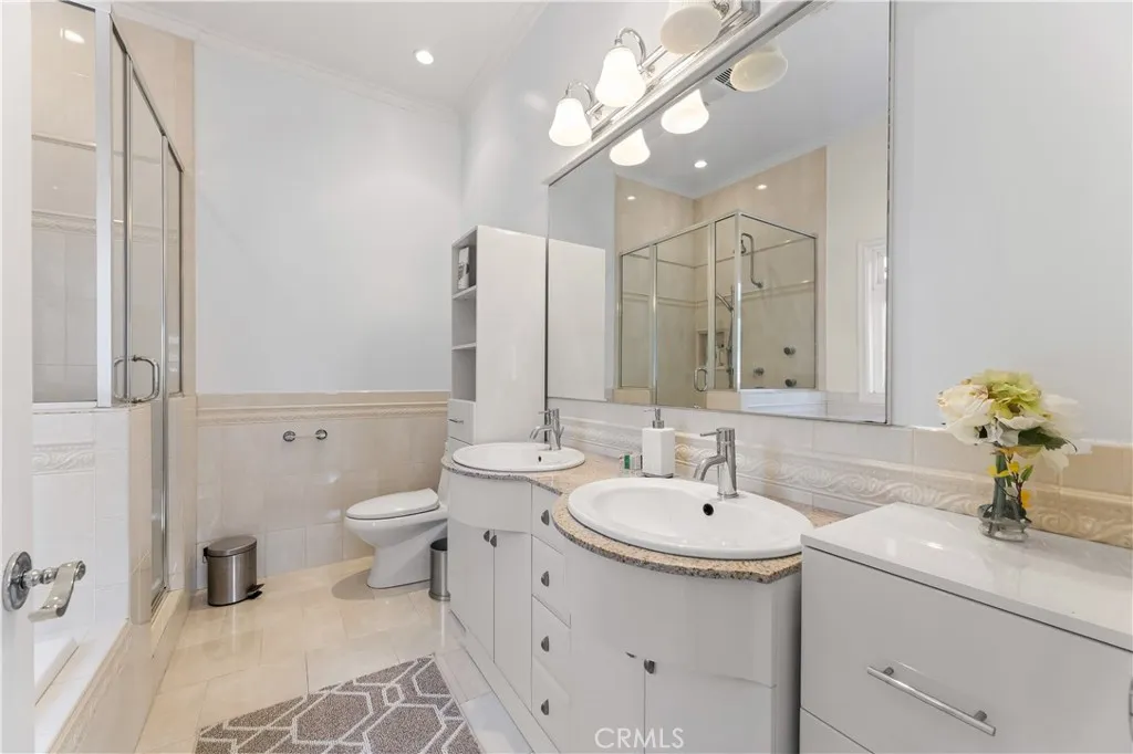 Now Price reduced!!! Dont miss this opportunity schedule your showing today! This stunning single-story residence is nestled in the highly desirable neighborhood of Woodland Hills, South of Ventura Boulevard. Enveloped by mature trees for ultimate privacy, this spacious 4-bedroom, 4-bathroom home offers 3,054 square feet of thoughtfully designed living space. Originally built in 1960 and tastefully rebuilt with permits in 2008, the home makes a grand first impression with double-door entry leading to an open-concept living and dining area. Soaring ceilings, rich hardwood floors, dual-pane windows, recessed lighting, and elegant French doors create an airy and inviting ambiance throughout. The formal living and dining rooms seamlessly flow to a serene, drought-tolerant backyardan entertainers dreamfeaturing a sparkling pool, built-in BBQ, and ample space for gatherings and cocktail parties. At the heart of the home is a chefs dream kitchen, complete with high-end appliances, striking countertops, and a show-stopping central islandideal for family meals and entertaining. The home offers four generously sized bedrooms, including two luxurious primary suites. Find spa-inspired bathrooms with dual vanities, a custom-tiled walk-in steam shower, jetted Jacuzzi tub, and walk-in closets for ultimate comfort and convenience. Additional highlights include:Tile roof, a circular driveway, direct access to an attached 2-car garage, a Security system and so much more. Enjoy an unbeatable location just minutes from the Calabasas Farmers Market, The Commons, Westfield Topanga & The Village
