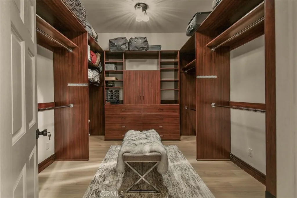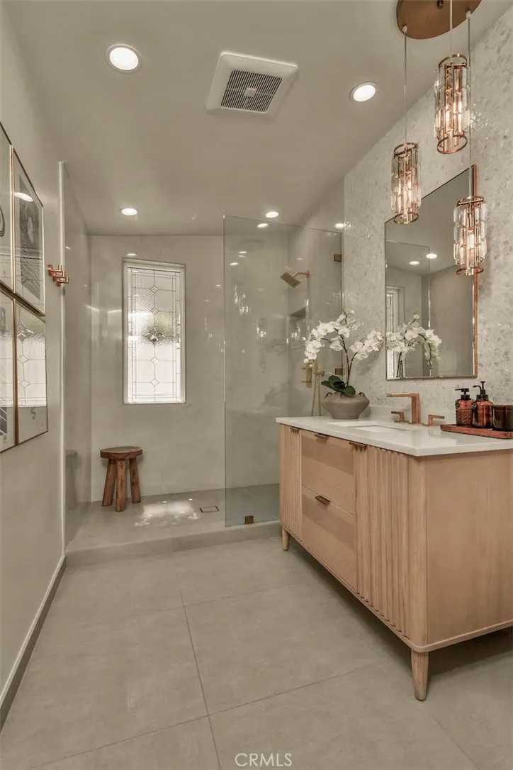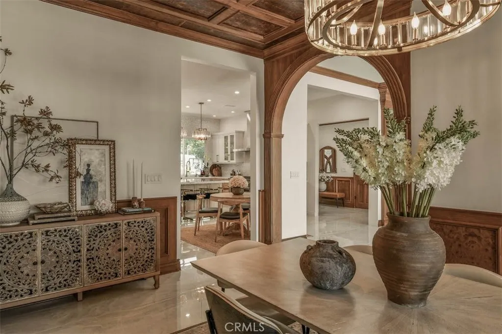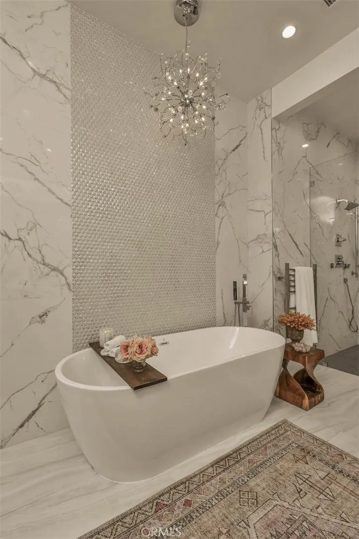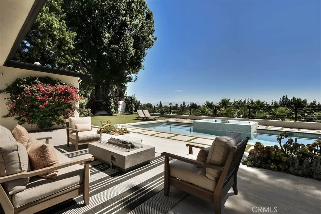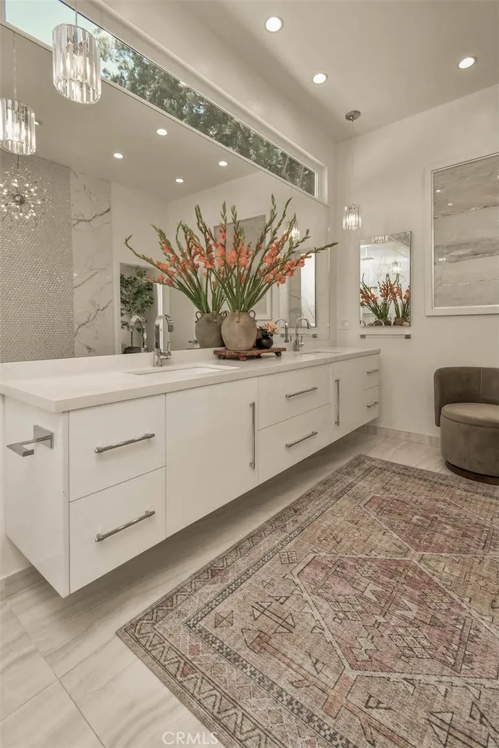 New price reduction offers unparalleled value in a highly coveted Woodland Hills neighborhood! Discover your own private oasis in this meticulously crafted, thoughtfully designed Charles Dubois home. Nestled on a peaceful cul-de-sac and boasting expansive panoramic views, this beautifully updated home offers an unparalleled living experience. Step through the stunning glass mosaic front door into a world of refined sophistication. High ceilings and custom walnut wood detailing creates warmth and character. Large slab imported Italian porcelain flooring throughout living areas and kitchen. The heart of the home features an open concept kitchen equipped with high-end stainless appliances. An oversized Brazilian quartzite island and brass chandeliers make a showstopping focal point, and are the perfect compliment to the exquisite real pearl tile backsplash and premium LumaTaj quartz countertops. The spacious primary suite features a large walk-in closet and a spa-like bathroom with dual sinks, freestanding tub and oversized shower. Wake up to a magical view of the sunrise over mountains each morning! Two additional bedrooms share a jack-and-jill bathroom, while a flexible fourth bedroom/2nd primary with full bathroom offers many possibilities for your lifestyle. Set it up as a guest bedroom, family room, TV area or a media/game room. A separate laundry room is equipped with side by side, brand new washer and dryer. Your backyard offers a resort-style sanctuary with spectacular skyline and mountain views! A saltwater heated pool and jacuzzi is perfect for year-round enjoyment.