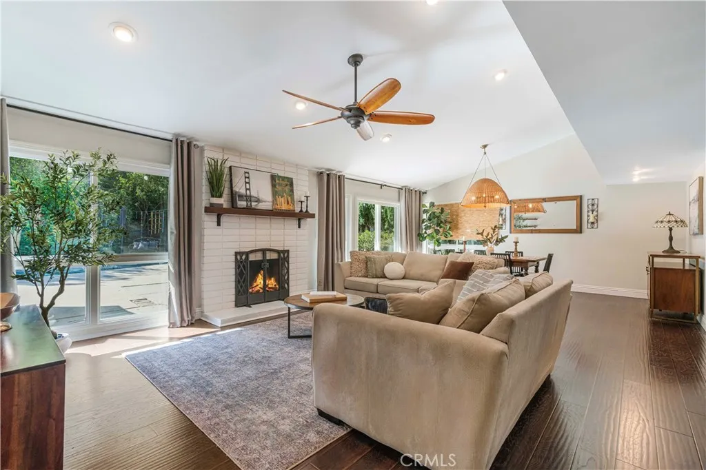 Welcome to Hidden Estates, one of Woodland Hills most sought-after neighborhoods! This Calabasas-adjacent 3-bedroom, 2-bath home blends modern updates with timeless California charm. Situated on a spacious private lot, the property features drought-tolerant landscaping, artificial turf in the front and back, and a sparkling pool perfect for year-round entertaining. Inside, youll find vaulted ceilings, big windows with abundant natural light, and a gas and wood-burning fireplace anchoring the open-concept living space. The remodeled kitchen boasts a large island that opens to the dining and family room, ideal for gatherings. The primary suite has been beautifully renovated with a luxury wet room featuring a soaking tub and dual showers. A bonus room off the kitchen provides the perfect spot for a home office, guest suite, or playroom. With newer windows throughout, updated bathrooms, and a move-in-ready design, this home offers the best of Woodland Hills livingtop-rated schools, easy freeway access, and total privacy in the backyard oasis.
