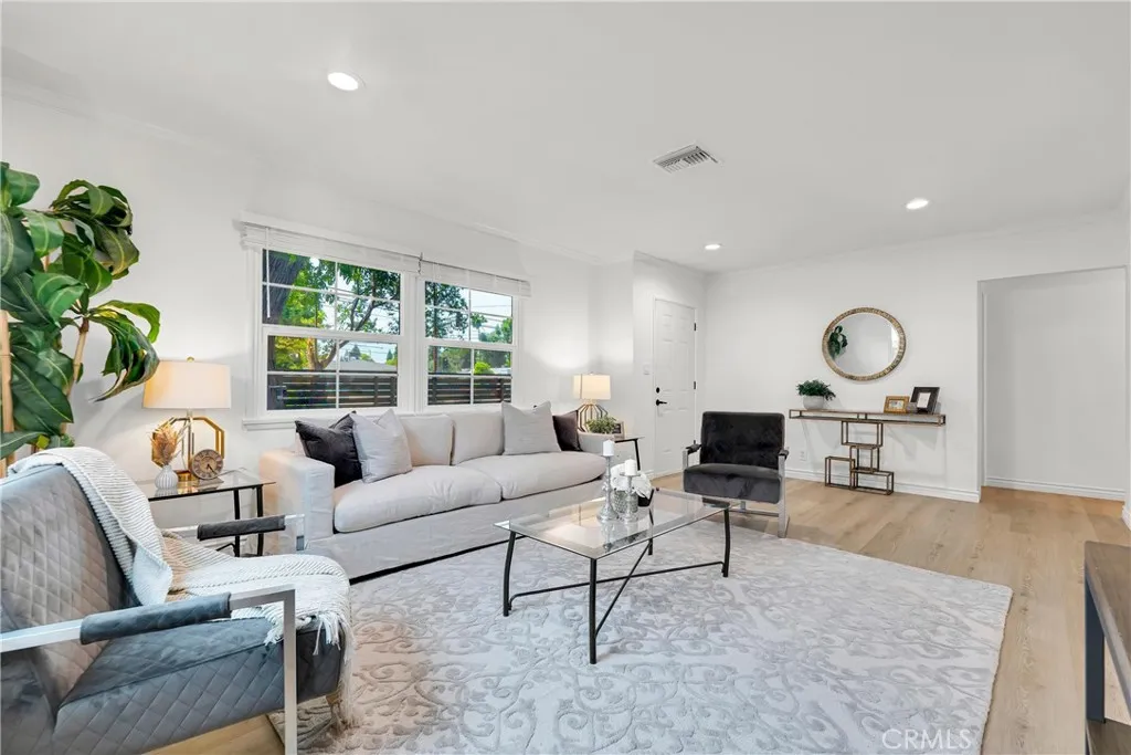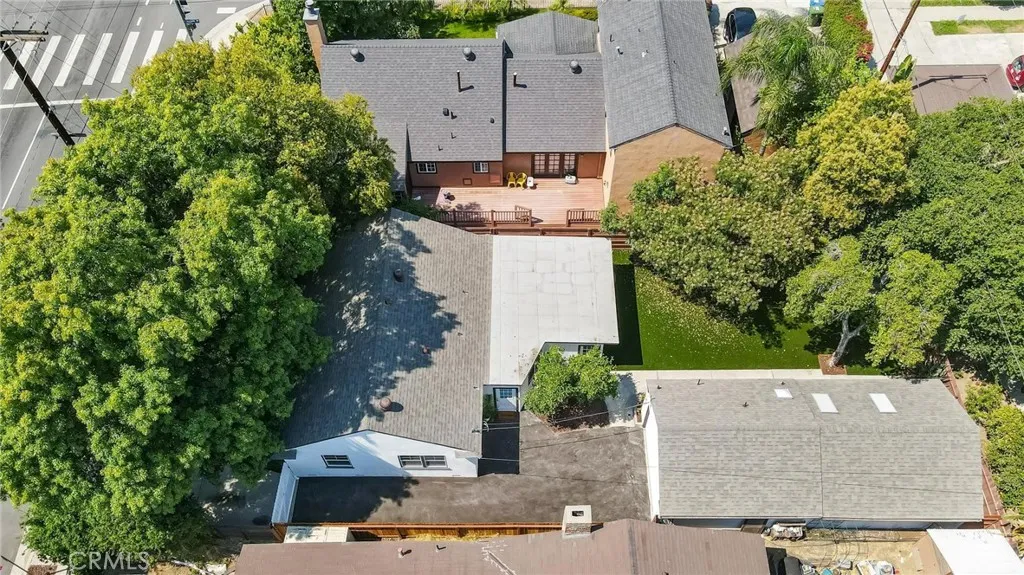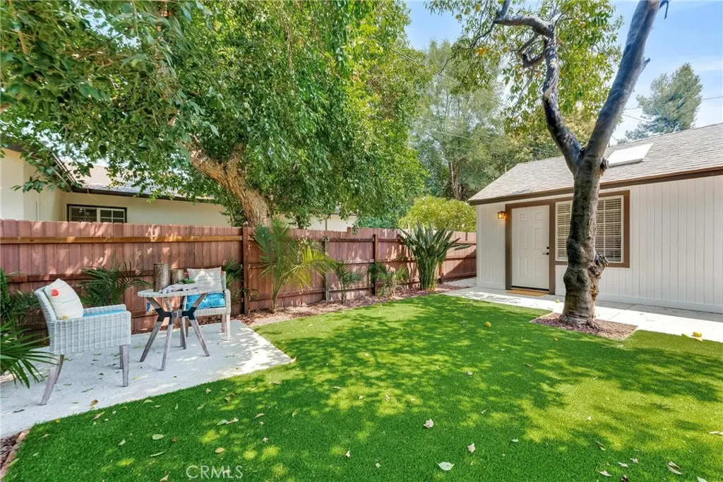 Freshly updated and reimagined mid-century bungalow with detached garage and studio/guesthouse in prime Woodland Hills location! Remodeled and renovated! Main house plus separate studio/guesthouse with bathroom and a garage. Highlights include tri-pane windows, brand new flooring, fresh paint, brand new wall mounted AC system with new ducts, all new appliances, and new landscaping throughout! Master bedroom beautifully updated, with huge walk-in closet. New, stylish wood fencing around the property provides security and privacy. Ample room for pets. Updated landscaping, front and back, makes use of towering shade trees, lush artificial/no water turf, and well landscaped low maintenance garden that creates a relaxing environment to enjoy or entertain outdoors. Enter into an elegant living room with recessed lighting which flows into the kitchen with sunny breakfast nook with wainscoting. The kitchen has been redone with brand new white cabinets, white quartz counters, tumbled marble backsplash, farmhouse sink and new stainless-steel appliances. Down the hallway is an updated full bath, with white quartz vanity and dual shower heads and two bedrooms, and new, central, stacking washer and dryer. Bronze fixtures and hardware throughout. The large, enclosed, lanai/master bedroom is equipped with a brand-new split system AC unit, oversized walk-in closet space, with direct access to the large backyard. The detached studio/guesthouse with bathroom includes a garage with a new garage door and would make a great ADU. The airy studio/guesthouse has cathedral ceilings, new skylights,