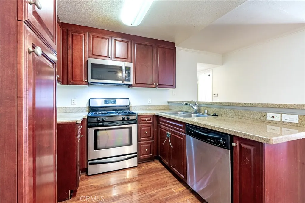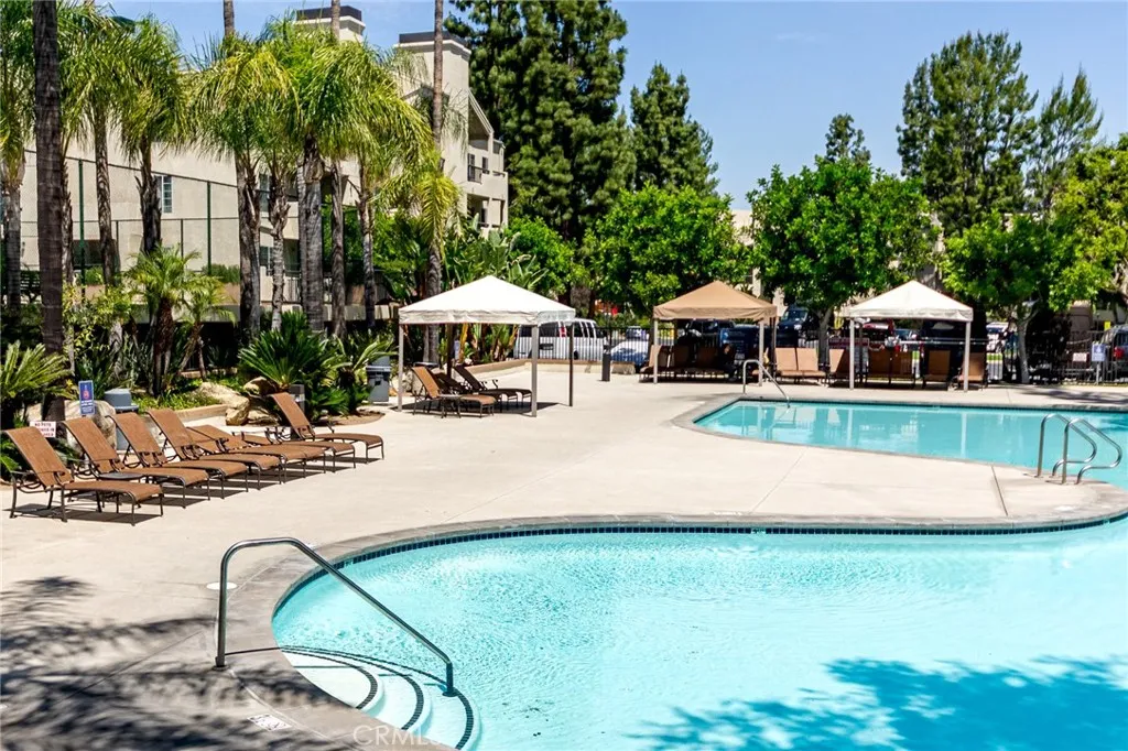 Welcome to this beautifully updated condo in the highly sought-after The Met at Warner Center, offering a rare 3-bedroom, 2-bathroom layout. This light-filled residence features abundant windows and an open-concept design anchored by a cozy fireplace. The living area flows seamlessly onto an exceptionally large private balcony, creating a serene retreat ideal for relaxing or entertaining. The updated kitchen is appointed with granite countertops, stainless steel appliances, and ample cabinetry. Hardwood flooring throughout enhance the homes modern appeal. The spacious primary suite includes its own full bathroom, while the generously sized second and third bedrooms provide comfort and flexibility. Two bathrooms were recently updated. An in-unit stackable washer and dryer add everyday convenience. Residents enjoy resort-style amenities including 4 multiple pools, 6 tennis courts, a fitness center, basketball and racquetball courts, spa areas, and 24-hour guard-gated security with patrol. Ideally located near premier destinations such as The Village at Westfield Topanga and redeveloping Rams Village, this home offers easy access to top-tier shopping, dining, and entertainment. A true Woodland Hills gemthis is a must-see opportunity you dont want to miss.