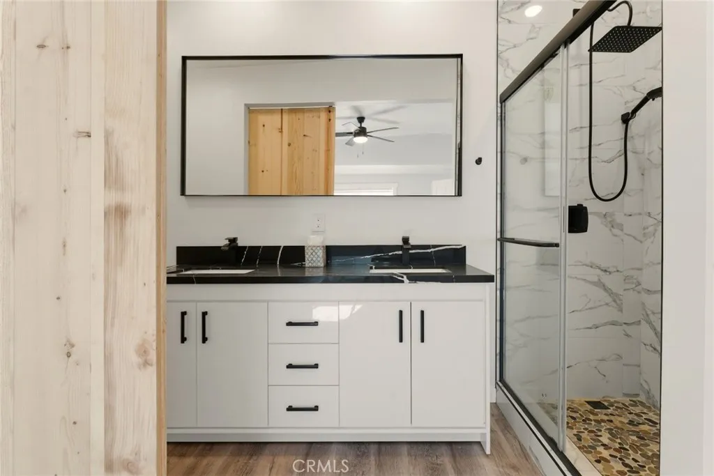 Meticulous and highly upgraded mid-century modern Charles Du Bois single level home! The property sits elevated above the street on a sprawling 11k lot boasting almost 100 feet of frontage adorned with manicured front lawns and lush landscaping. An ascending stone pathway leads to the covered front porch cladded with original stone exterior. Step through double doors into the entry foyer that opens to expansive living & dining rooms each with tongue & groove wood beamed vaulted ceilings, original stone fireplaces, and two sets of glass sliders that open to the backyard for the perfect indoor/outdoor flow. The oversized remodeled kitchen boasts large island with breakfast bar seating, quartz counters with soft close cabinetry, wine fridge, and a suite of Forno stainless appliances including a 60 fridge/freezer and range with double ovens and 8-burner stove with pot filler. The spacious primary suite features high vaulted ceiling, glass slider that opens to the yard, large walk-in closet, separate makeup vanity, and en-suite upgraded bathroom with dual sinks, spa tub, and separate walk-in shower. Two of the secondary bedrooms have high vaulted ceilings and share a spacious remodeled bathroom with new vanity with stone counter, dual sinks, and walk-in shower. There is a separate wing of the home which has both interior and exterior access making it the ideal flex space for extended family, home office/studio space, or great rental income featuring two additional bedrooms, a bathroom with dual sinks and walk-in shower, a separate full kitchen with stainless appliances, and its