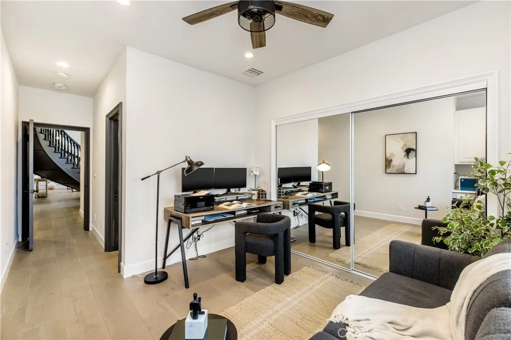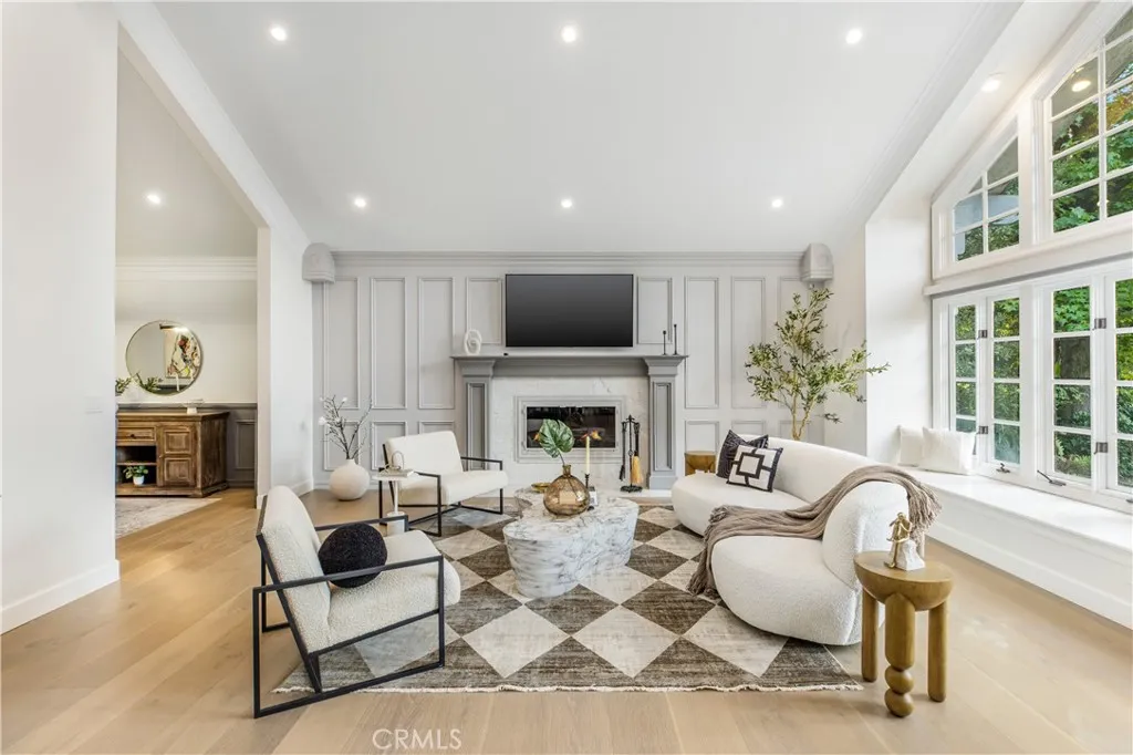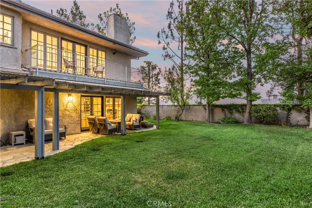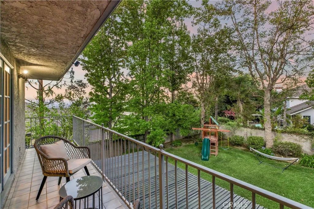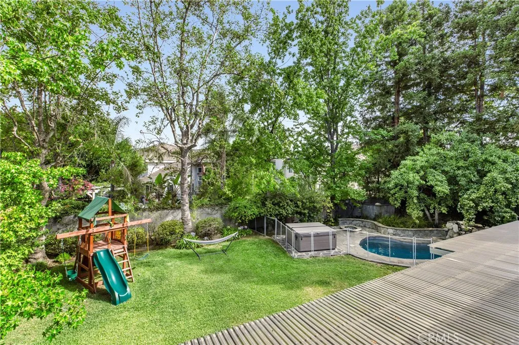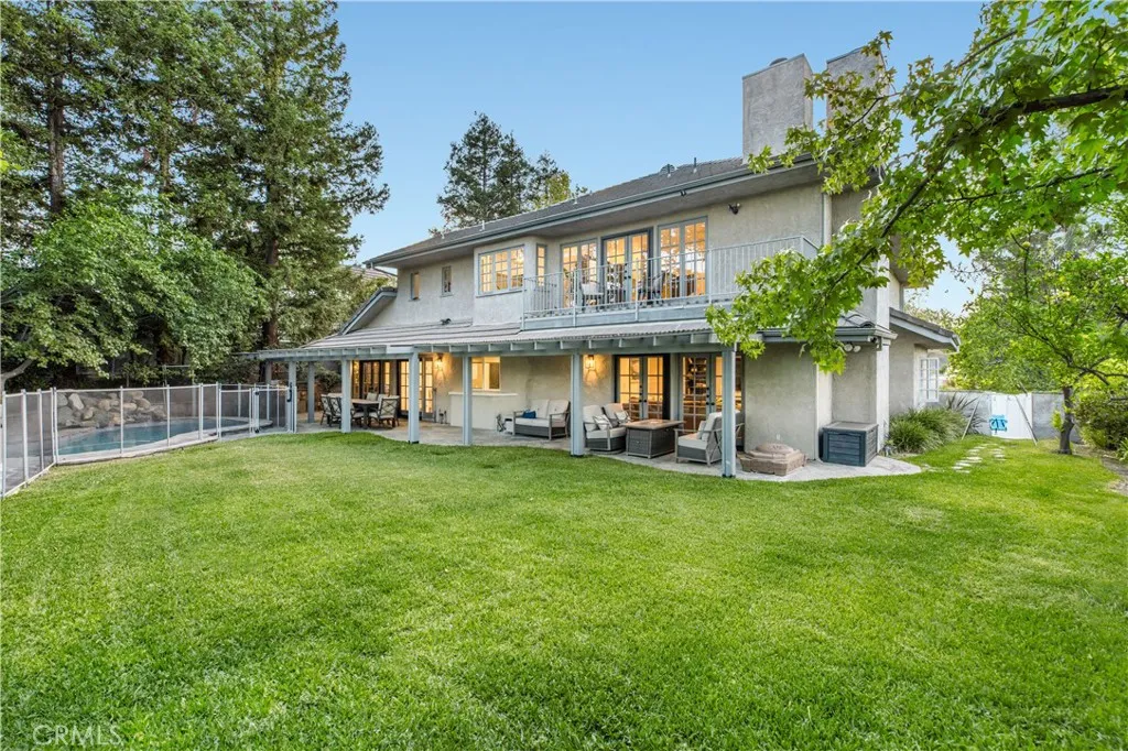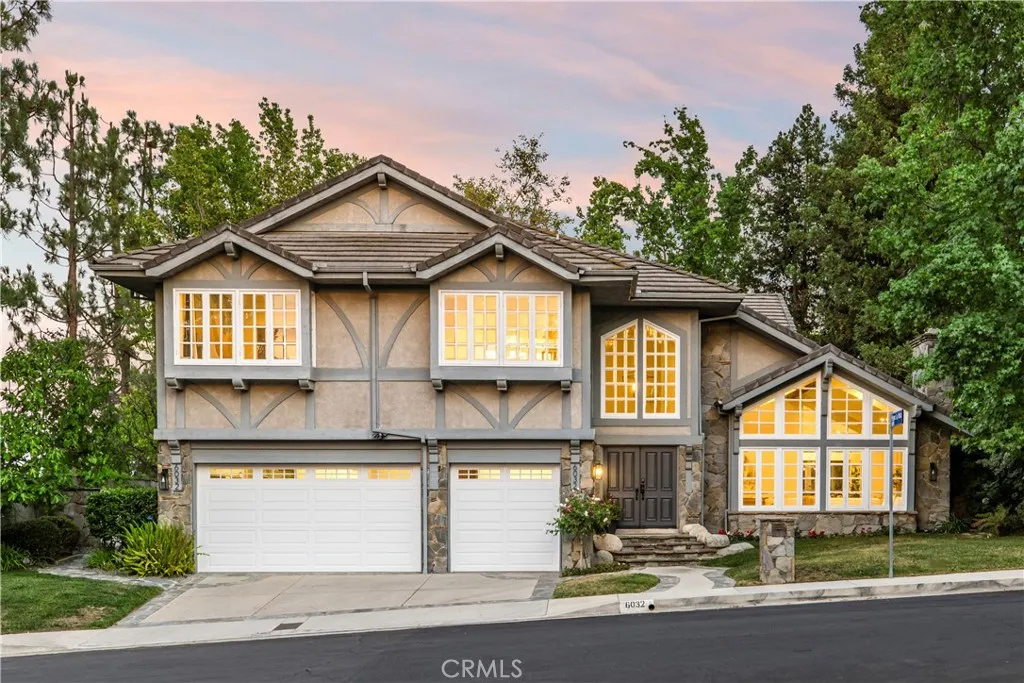 Perched high in one of Woodland Hills most sought-after neighborhoods, Valley Circle Estates, this stunning residence at 6032 County Oak Rd offers the perfect blend of luxury, comfort, and smart home convenience. From the moment you step inside, youre welcomed by grand scale soaring vaulted ceilings, a dramatic curved staircase leading up to 3 of the 4 bedrooms, and a grand foyer that sets the tone for the homes elegant yet functional layout. The thoughtful floor plan provides great flow between all main living spaces. One side leads to a main-level ensuite bedroom, perfect for guests or a home office, while the other opens to a spacious great room with a breathtaking wall of windows and French doors that fill the home with natural light. At the heart of the home is a TRUE chefs kitchen, ideally located between the formal dining room and family room. It features a double Thermador oven, Viking range and hood, huge Thermador refrigerator, walk-in pantry, a double-sided island with prep sink, and a breakfast nook that leads out onto the beautifully landscaped yard. Step outside and youll find an entertainers dream. A full-length patio stretches across the back of the home, with access from the dining room, kitchen, and family room. The brand new built-in BBQ with a direct gas line makes outdoor cooking easy, while the expansive covered seating area is perfect for hosting year-round. A smart heated pool with a waterfall, new hot tub, and expansive flat lawn framed by mature trees create a private backyard oasis. Upstairs, the oversized primary suite features partial valley vie