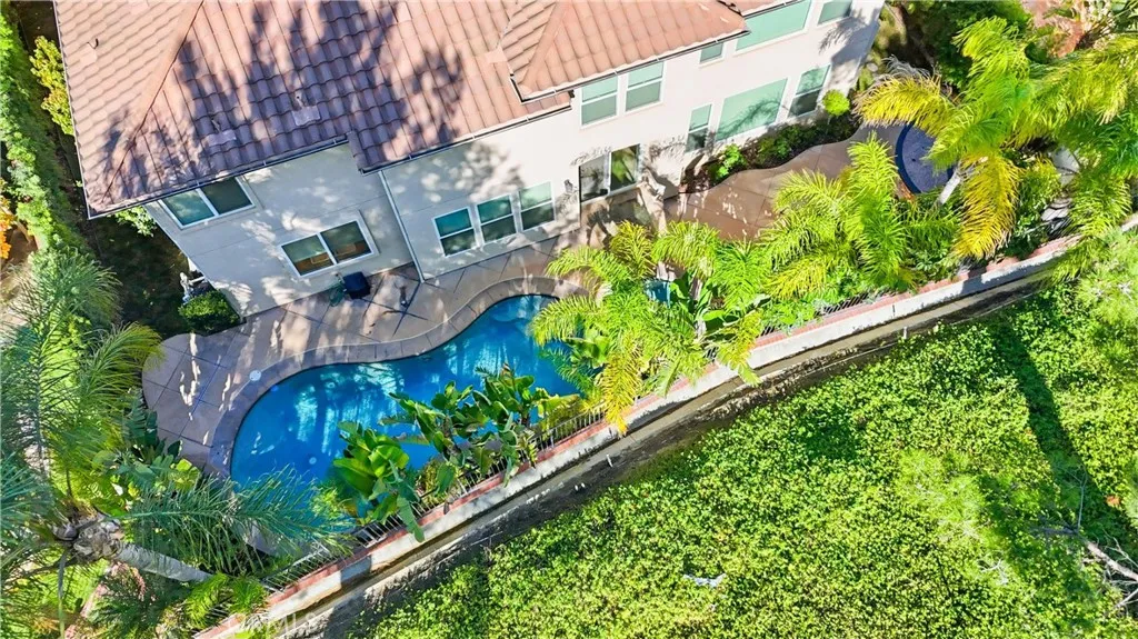 Yorba Linda estate located in the Pointe at East Lake, one of East Lake Villages most coveted neighborhoods. This impressive 4,261 sq. ft. residence features 5 bedrooms and 5 baths, thoughtfully designed for both grand entertaining and everyday comfort. Nestled on a quiet cul-de-sac street, this exceptional home offers luxury living at its finest with a true resort-style backyard. A dramatic entry welcomes you with expansive marble flooring and soaring two-story ceilings that elevate the formal living and dining areas, filling the space with natural light and elegance. The gourmet kitchen is a chefs delight, showcasing extensive counter space, premium stainless-steel appliances, and a generous center island with prep sink. The kitchen flows seamlessly into the inviting family room, highlighted by a fireplace and large picture windows that capture views of the backyard. The main level also includes a spacious en-suite bedroom with a walk-in closet, ideal for guests or multigenerational living, along with a stylish powder room and an oversized laundry room offering abundant cabinetry. Upstairs, the spacious primary suite provides a private retreat area and a spa-inspired bathroom featuring dual vanities, a jetted tub, separate walk-in shower, and two large walk-in closets. Three additional oversized bedrooms complete the upper level: one with its own en-suite bath, and two sharing a generous dual-sink bathroom. The 5th bedroom is large enough to serve as a game room, media room, or junior suite. Step outside to a backyard designed for unforgettable days and evenings, your own