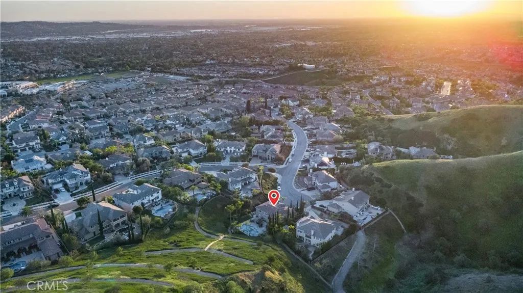 THE LARGEST LOT IN KERRIGAN RANCH! Nestled at the end of a quiet cul-de-sac, this magnificent Mediterranean-style residence offers the ultimate in PRIVACY and SPACE. Spanning an extraordinary 41,000 SQFT LOT, this property directly backs to the serene CHINO HILLS STATE PARK with no rear neighbors and DIRECT ACCESS to premier hiking and biking trails. This versatile floor plan features 6 BEDROOMS and a dedicated EXECUTIVE OFFICE. The main level includes two guest bedrooms with full bathrooms, ideal for multi-generational living or guests. The CHEFS KITCHEN is a centerpiece of the home, featuring premium THERMADOR stainless steel appliances, a generous center island, and ample cabinetry, opening effortlessly to the grand living and dining areas. The resort-style backyard is an ENTERTAINERS DREAM, featuring a sparkling pool, spa, covered patio, and a built-in BBQ bar. With nearly an acre of land, there is UNLIMITED POTENTIAL for a future ADU, sports court, or private oasis. Upstairs, the PRIMARY SUITE provides a tranquil escape with a spa-style bath and spacious walk-in closet. Located within the TOP-RATED YORBA LINDA SCHOOL DISTRICT and just moments from the Yorba Linda Town Centers shopping and dining. Featuring a long private driveway and a 3-CAR GARAGE, this estate offers a rare combination of location and luxury. A MUST-SEE ESTATE IN ONE OF YORBA LINDAS MOST COVETED COMMUNITIES!