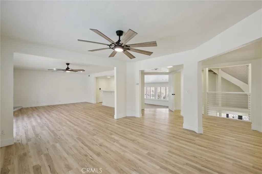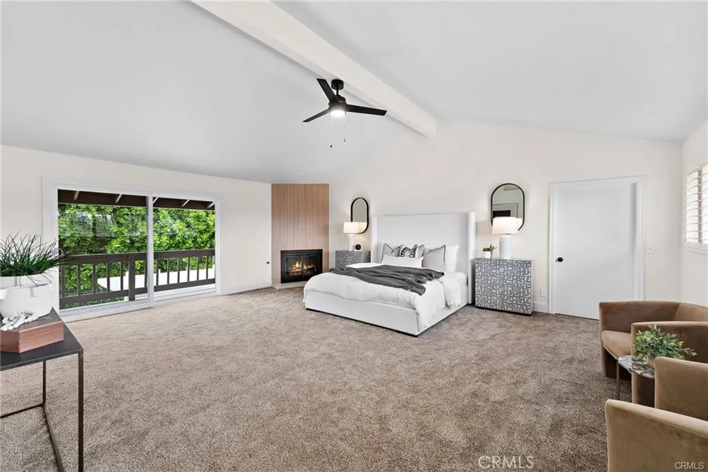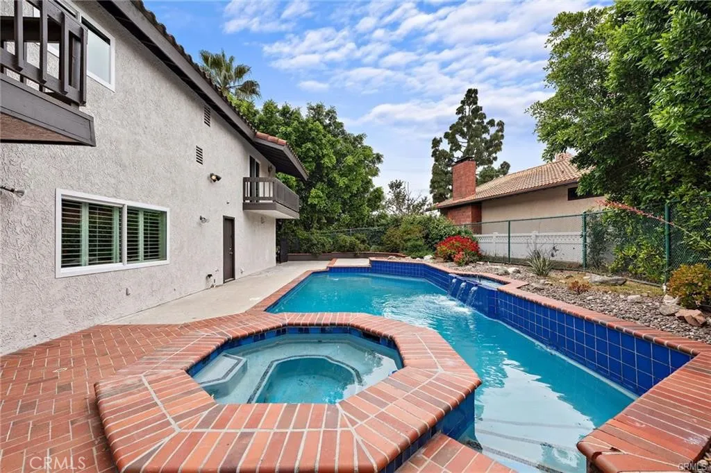 Experience the perfect blend of privacy, elegance, and luxury in this turn key, one-of-a-kind Yorba Linda estate, tucked away at the end of a peaceful cul-de-sac on a private road shared with only three neighbors. A long, dramatic driveway leads to a grand foyer with a sweeping three-story spiral staircase, setting the tone for the sophisticated living spaces that follow. The open, light-filled layout is perfect for entertaining, featuring a spacious living room with vaulted ceilings, a formal dining room bathed in natural light, and an expansive entertainment room complete with a wet bar, mini-fridge, wine storage, fireplace, and space for gatherings of any size. The gourmet kitchen offers recessed lighting, floor-to-ceiling cabinetry, abundant counter space, and a walk-in pantry, with a breakfast nook and family room opening to an elevated deck ideal for dining under the stars. The luxurious primary suite features vaulted ceilings, a private balcony, fireplace, spa-inspired bath, and two oversized walk-in closets. Additional bedrooms share balconies and a Jack-and-Jill bath. Parking and storage are exceptional with an oversized two-car garage with built-ins, a second oversized garage with half bath and tall ceilings for larger vehicles, plus a covered carport. The backyard is a private retreat with a pool, spa, fountain, and elevated deck, complemented by a large hobby room for creative projects. Set on a half-acre hill with mountain views, mature trees, and fruit trees, this rare property offers the ultimate in seclusion while being just minutes from Imperial Highway and