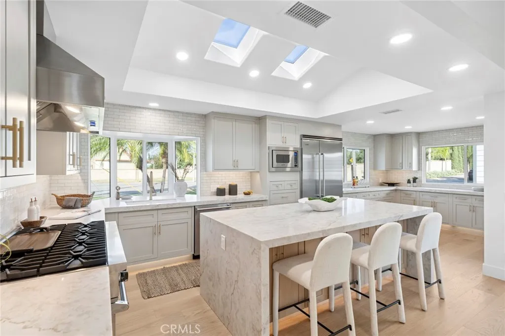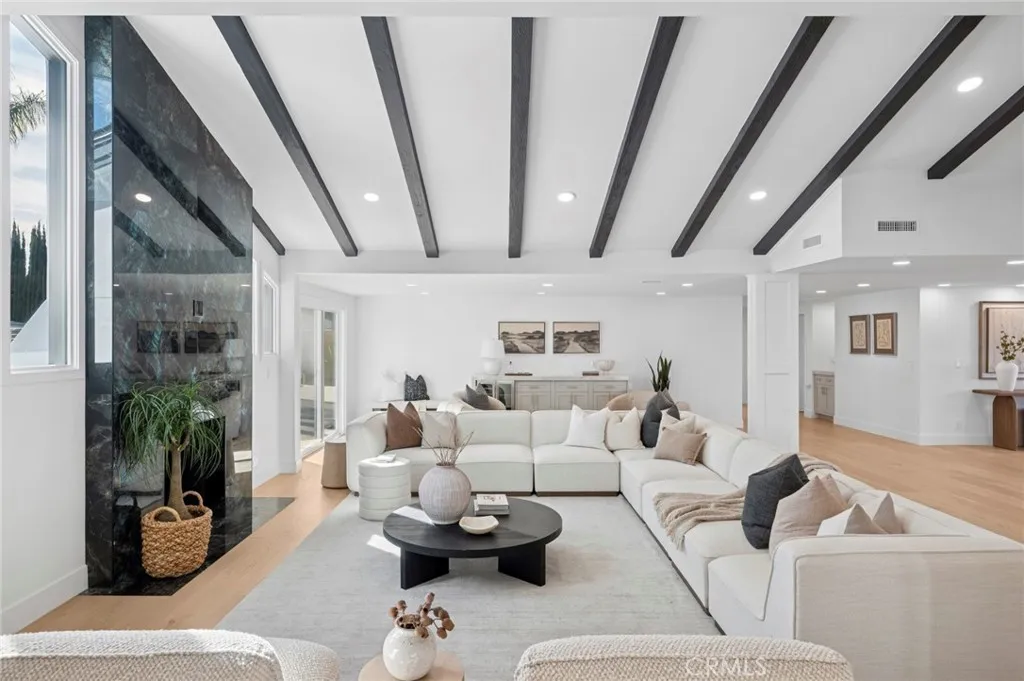 Major Price Improvement | Final Open House This Weekend | Offer Deadline Tuesday 4/21 A beautifully designed multi-generational estate offering 6 bedrooms and 6 bathrooms across two separate residences, set on an expansive, flat lot of over half an acre in one of Yorba Lindas most desirable neighborhoods. The main residence features 4 bedrooms and 4 bathrooms with light-filled interiors, wide-plank wood flooring, vaulted ceilings, and exposed beam architecture that brings warmth and character throughout. The living spaces are open yet well defined, anchored by a fireplace feature and large windows that create a seamless connection to the outdoors. The kitchen serves as the heart of the home, designed for both daily living and entertaining. It includes custom inset shaker cabinetry, an oversized waterfall island with seating, professional-grade Viking appliances, designer tile backsplash, integrated lighting, and direct access to outdoor living areas. The primary suite is positioned as a private retreat with vaulted ceilings and tranquil sight lines. The spa-inspired bathroom features an oversized walk-in shower, soaking tub, custom vanity, and refined finishes. Additional bedrooms and bathrooms continue the homes cohesive design, offering comfort, privacy, and luxury. A standout feature of the property is the separate second residence, offering 2 bedrooms and 2 bathrooms above an expansive RV-sized garage. The garage provides substantial space ideal for multiple vehicles, specialty storage, or collector use. The upper residence includes a full kitchen and living area, creat