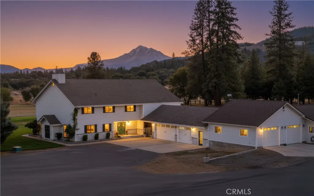 Experience the true "Northern California" lifestyle from the serenity of this extraordinary estate. Offering a perfect blend of elegance, comfort, convenience and functionality this home showcases a completely reimagined interior with timeless craftsmanship, an abundance of natural light and expertly curated rooms. The primary suite offers a cozy corner fireplace and vaulted, exposed beam ceiling which leads into the stunning primary bathroom complete with dual sinks, sauna, soaking tub and walk-in shower. As you continue on, the ultimate showstopper is the luxurious walk-in closet, that rivals the size of many bedrooms. A 1500 sq. ft., ADA compliant casita was thoughtfully constructed in 2020; meticulously designed with 2 bedrooms, 2 bathrooms, full kitchen and its own 2 car garage creating the ideal separate living space for multigenerational living or a luxury retreat for weekend guests. Both homes center around a stunning outdoor gathering area complete with sparkling pool, slide, diving board and hot tub. Solar panels are an added bonus. Plus potential for a pickleball court! Whether you're a seasoned equestrian or simply dreaming of peaceful rural living near the base of majestic Mt. Shasta, this property offers everything you need with a spacious horse barn including two stalls, tack room, and plenty of hay storage. A seasonal creek and scenic walking or riding trail winds through the property, ideal for trail rides or relaxing strolls. Make an appointment today for a private viewing!