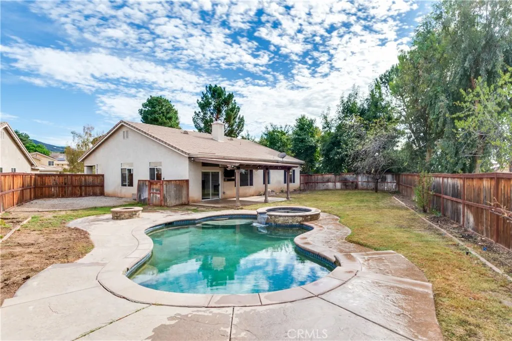 Welcome to your new sanctuary in the heart of Yucaipa, tucked away on a quiet cul-de-sac where comfort meets style in this delightful four-bedroom, two-bathroom home. Spanning 2,000 square feet of thoughtfully designed living space, this property showcases modern vinyl flooring throughout and stunning quartz countertops that add both durability and elegance to your daily routines. The primary bedroom provides a comfortable retreat, while three additional bedrooms offer flexibility for guests, home offices, or creative spaces. The generous lot size provides ample room for outdoor activities and future landscaping dreams, while the existing pool and spa create your own private resort experience right at home. Whether you're hosting weekend barbecues or enjoying quiet morning coffee, the outdoor space offers endless possibilities for relaxation and entertainment.