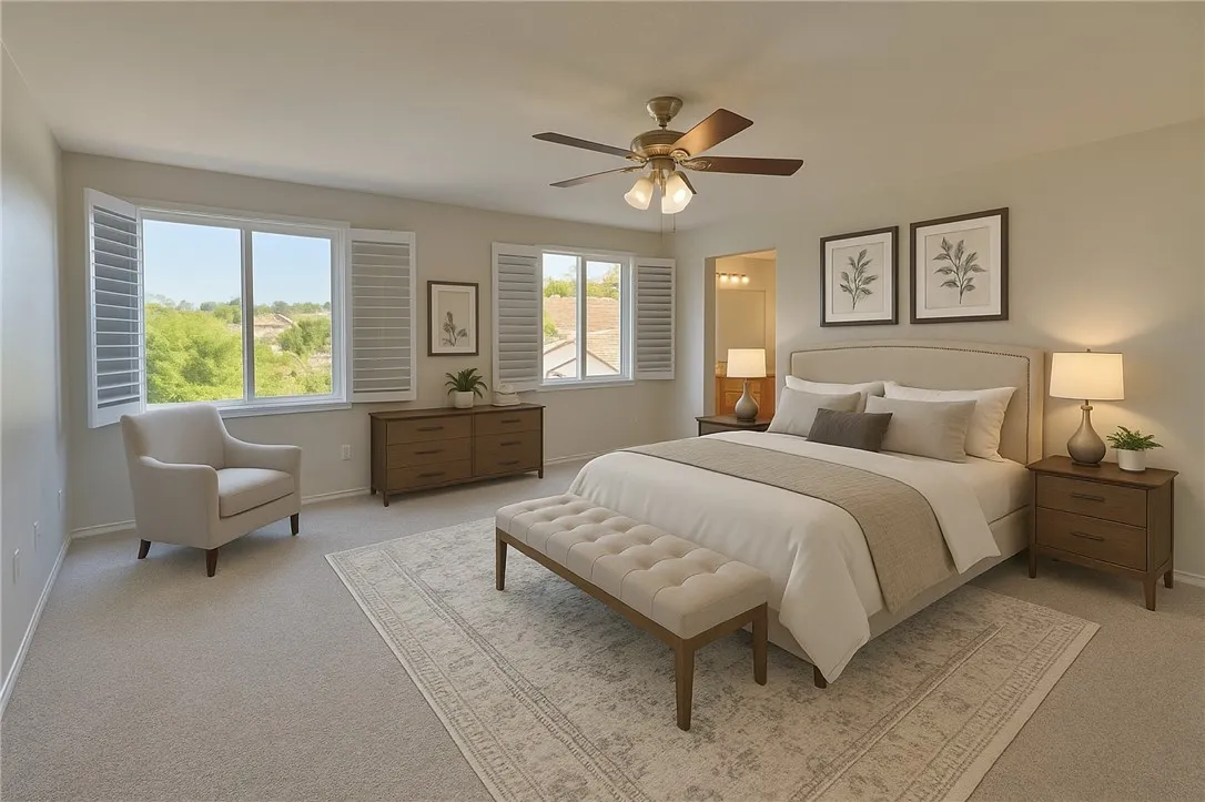 Home for the holidays- Imagine a new home for Christmas. Luxury, Location & Lifestyle at The Reserve at Crafton Hills Immaculate 4-bedroom, 4-bath home with over 2,900 sq. ft. of beautifully designed living space the largest and best-priced home in the area! Set on a premium corner lot, this modern two-story offers stunning curb appeal, a two-car garage, and a bright open layout with soaring ceilings and fresh paint, luxurious hardwood flooring and newer carpet ( 2 years ago). Enjoy a rare downstairs bedroom and full bath, plus a chefs kitchen with a brand-new double oven and microwave, seamlessly connected to the spacious indoor and outdoor living areas. Upstairs, the oversized primary suite features a spa-like bath and walk-in closet, alongside two additional bedrooms and a versatile open loft. Relax in the fenced and landscaped backyard with views of the mountains. Very private low maintenance block wall fence. The block wall keeps this backyard more quiet than other homes in the area. Located in The Reserve at Crafton Hills, residents enjoy low HOA dues, a clubhouse, pool, spa, tennis and pickleball courts, and 35 acres of open space. Close to top-rated schools, Crafton College, parks, and shopping this home offers the perfect blend of comfort, elegance, and convenience. (Photos virtually staged.)