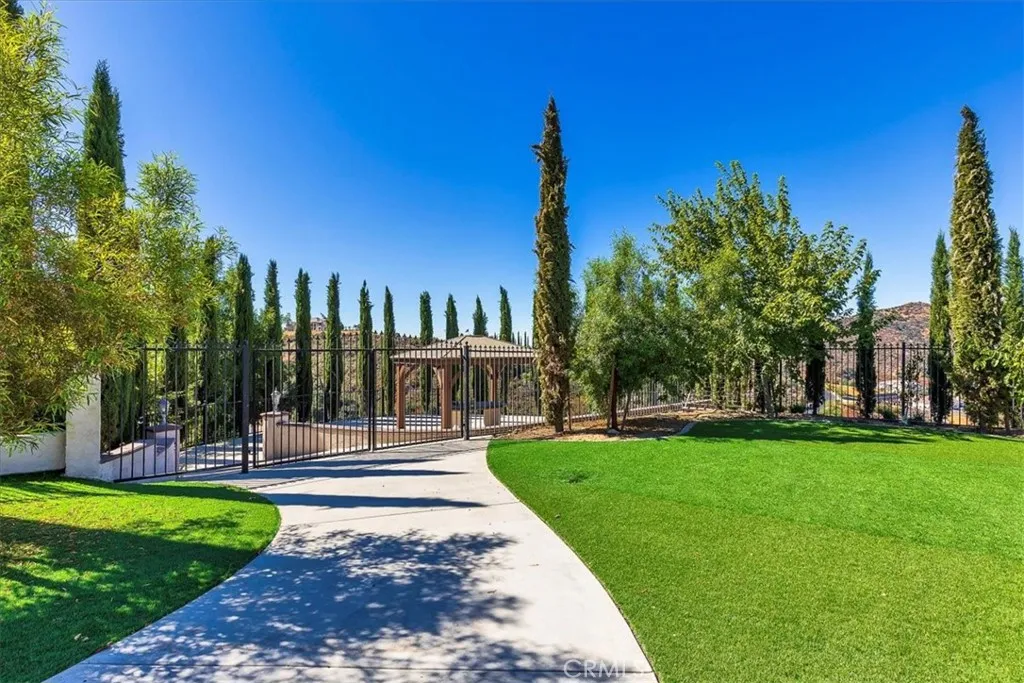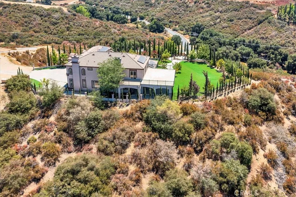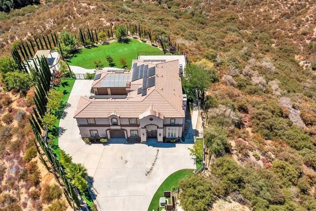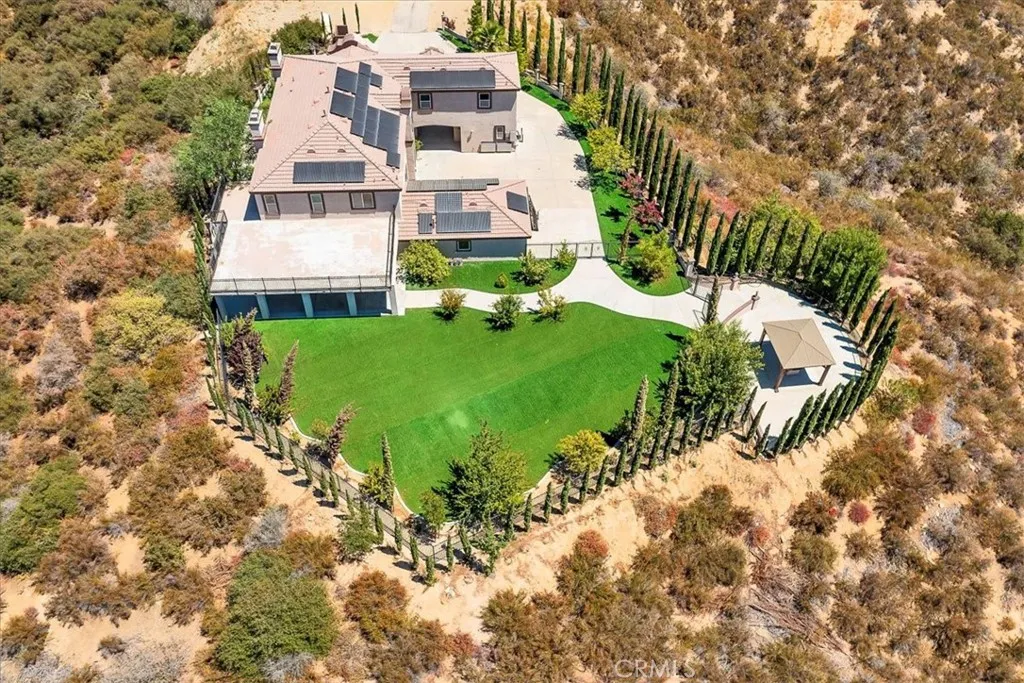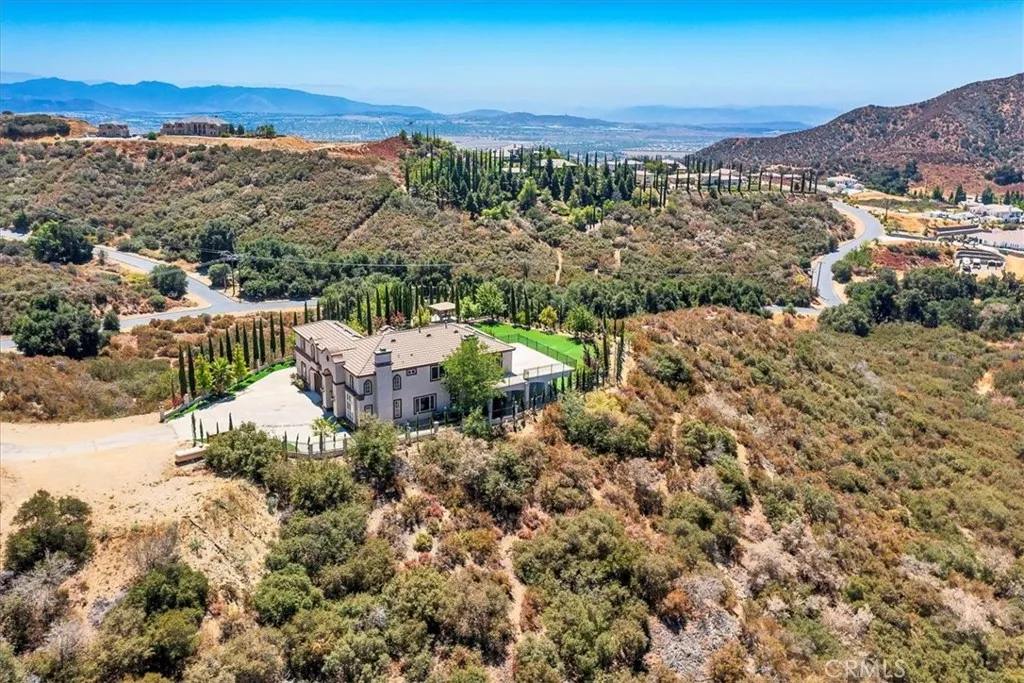 Welcome to 39292 Butterfly Drive, a custom estate perched on nearly 5 acres in the prestigious gated community of Wildwood Highlands. Nestled near Wildwood State Park and just minutes from Oak Glens wineries and apple orchards, this home combines timeless elegance with breathtaking surroundings. A grand porte cochere and double-door entry set the stage for the dramatic foyer, complete with soaring ceilings and a dazzling crystal chandelier. Real wood floors flow throughout the main level, where youll find an office, 1/2 bath, convenient laundry room with sink, and a detached guest room with its own private full bath, ideal for extended family, guests, or future ADU conversion. Upstairs, discover 4 bedrooms and 3 bathrooms, including the luxurious primary suite, a retreat featuring a private sitting area with fireplace, spa-like bath with soaking tub and glass shower, and an expansive deck showcasing panoramic valley views framed by snowcapped mountains. The gourmet kitchen is a chefs dream with a large island, granite counters, GE Monogram appliances, six-burner gas range with hood, double ovens, trash compactor, and a spacious walk-in pantry. Three fireplaces add warmth throughout, while the finished 3-car garage impresses with epoxy flooring and insulated doors. Outdoors, enjoy the fully fenced yard lined with Italian Cypress, mature fruit trees, low-maintenance artificial turf, and a large covered patio with ceiling fans. A private covered observation area is perfect for gatherings or a future outdoor kitchen. Energy efficiency abounds with 61 paid-off solar panels, 3 Te