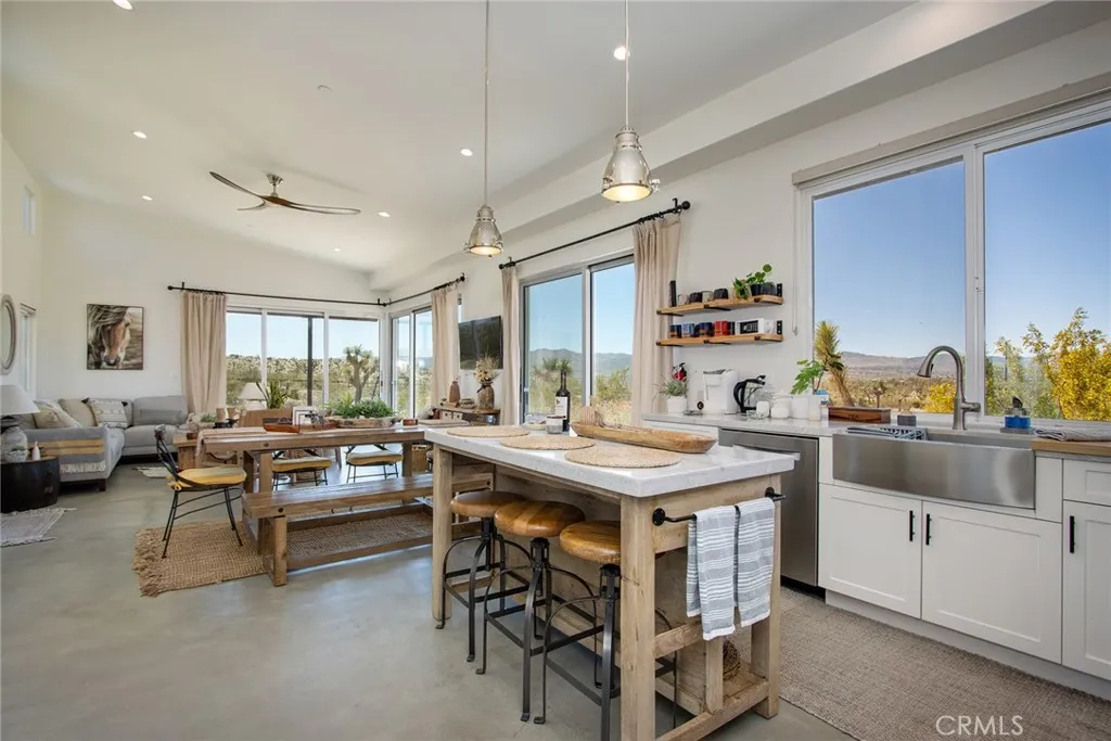 A Desert Dream with Timeless Design Luxury Home on just under 5 Scenic Acres Tucked away in one of the most desirable areas of Yucca Valley, just minutes from the iconic Joshua Tree National Park, this stunning custom-built home is a rare find. Set on 5 serene and scenic acres, its the perfect blend of high design, luxury living, and desert magic. Currently a successful 5-star-rated Airbnb with a loyal base of returning guests, this home is also a cherished vacation retreat, offering peace, privacy, and an unforgettable escape from the everyday. Thoughtfully designed with an eye for detail and ease, every element of this home is intentionalfrom the polished concrete floors (beautiful and low-maintenance), to the soaring floor-to-ceiling sliding glass doors that dissolve the boundaries between inside and out. Natural light pours into every space, and the sweeping views of the mountains will leave you breathless. The gourmet kitchen features sleek stone countertops and flows seamlessly to the expansive covered patioan entertainers dreamcomplete with an outdoor kitchen and dining area that overlooks the vast, tranquil landscape. Wind down on the sun deck, soak in the jacuzzi, or refresh under the outdoor shower after a morning hike through the nearby trails. This solar-powered home offers the best of both worlds: private and rural, yet just a short drive from Pioneer Town, Landers, farmers markets, and Yucca Valleys trendiest restaurants and shops. Whether youre looking to expand your short-term rental portfolio, secure a one-of-a-kind vacation home, or plant roots in the hig