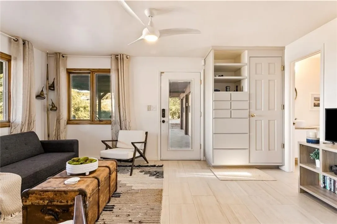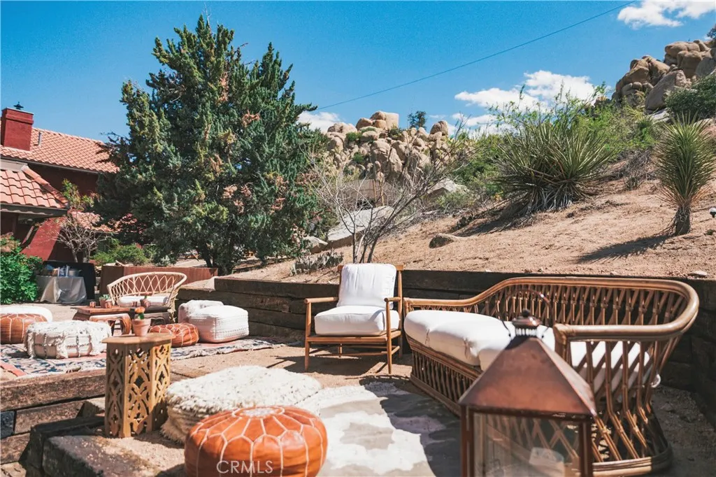 Welcome to Boulder Grove Ranch, an ultra-private 8+ acre estate carved into a secluded canyon of iconic boulders and sweeping desert vistas. This design-forward compound features a sophisticated two-story main residence with a spacious primary suite and guest loft, plus a semi-detached guest house with its own private entrance. Elevated on the edge of two private boulder valleys, the property offers commanding views and a sense of quiet grandeur. Curated interiors blend modern minimalism with rustic textures and bohemian warmth, creating a refined yet relaxed aesthetic. Purposefully reimagined as a luxury escape and part-time rental, Boulder Grove Ranch has hosted magazine-worthy weddings, high-end photo shoots, and intimate gatherings beneath the stars. Amenities include a cedar soaking spa perched among the rocks, an architecturally striking barn and deck built into the boulders, and a network of trails and gathering spaces with artful signposts guiding you through the landscape. Now eligible for wedding venue use with permit (buyer to verify), the estate offers exceptional potential for both lifestyle and income. Add a pool (see digital rendering in property photos) and maximize the potential this exceptional property has to offer! Secluded feeling yet a short 7 minute drive to Yucca Valleys shops and dining, and easy access to Joshua Tree National Park & Palm Springs. Spanning three legal parcels and enveloping most of the surrounding cul-de-sac, this is a truly rare opportunity to own one of the High Deserts most iconic private retreats.