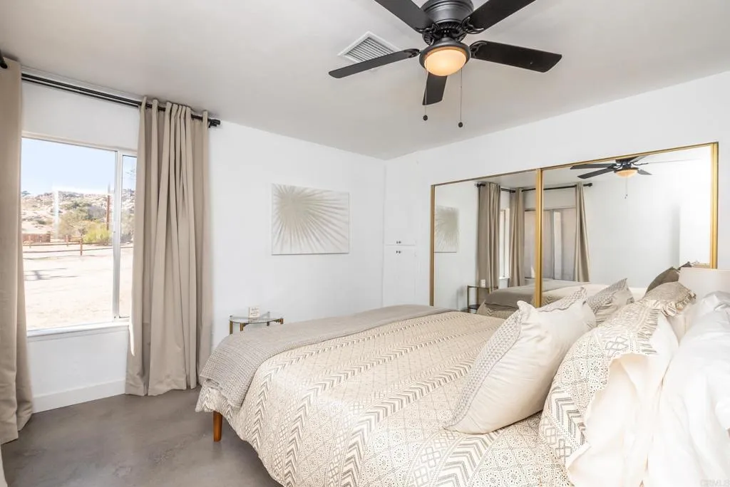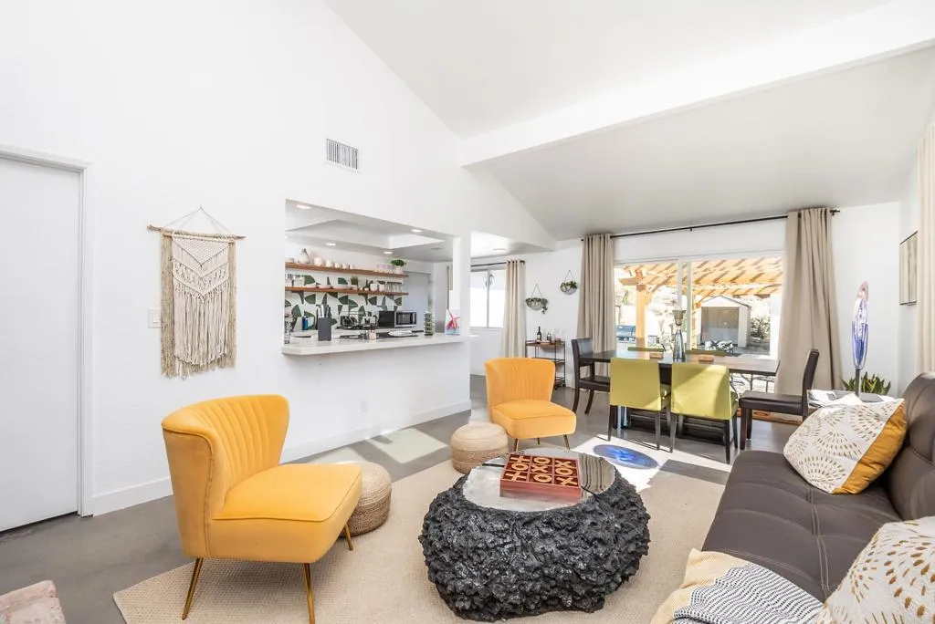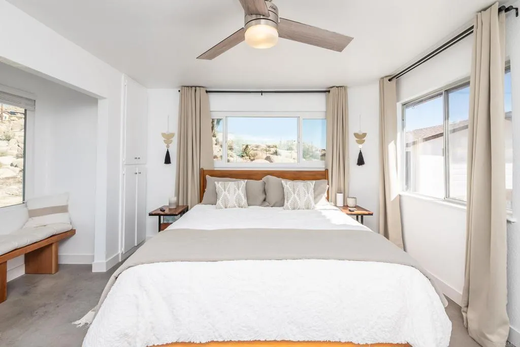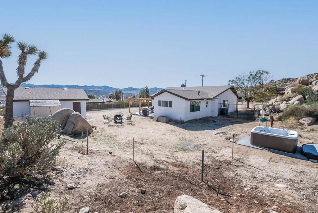 PRICE ADJUSTMENT...A Desert Escape Where Time Slows Down. Theres something about this home in Yucca Valley that stays with people long after theyve left. Maybe its the silence. Maybe its the way the boulders wrap around the backyard like the land is holding you. Or maybe its how guests arrive expecting a weekend getaway and end up giving it five stars because it gave them more than they knew they needed. Just ten minutes from Joshua Tree National Park, the home sits in its own worldprivate, tucked into nature, and designed with intention. Inside, the renovations were done with care: new roof, new AC, fresh paint, new floors, updated countertops, new refrigerator and dishwasher. The living room moves easily into the kitchen, making it a place where people naturally gather after a long day exploring the park. The fireplace anchors the space on cool desert nights. Theres a den that works as a theater room or simply a space to unwind. A separate office gives the house flexibility for remote work or creative time. The three bedrooms are set apart from the common areas, and the primary suite draws you in with a window that frames the boulders like a piece of art. The bath with the clawfoot tub feels like a place to end long days in the desert. Outside is where this home separates itself from anything else on the market. The backyard is a world of its ownno neighbors looking in, just raw desert beauty. Boulders rise around you. City lights flicker in the distance after sunset. The hot tub sits between the rocks, and at night the sky opens up in a way only this part of the desert c