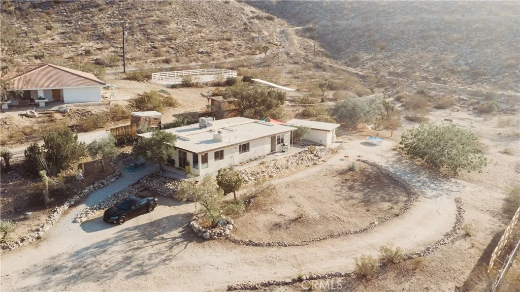 A renovated mid-century modern home nestled hillside on 1.18 acres of fully fenced land. Amazing property with extensive valley and mountain views. Great, rare location! Close to town, yet tucked away hillside on an elevated lot which boasts ample open space. Sweeping panoramic views of the valley below with city lights in the distance at night. Views, Views, views! Currently an Airbnb rental which is able to be negotiated turn-key furnished; including all indoor furnishings and art, as well as all outdoor furniture, cowboy tub, built-in hammock trio, horseshoe pits, fire-pit, built-in tether ball pole, and BBQ. This renovated 3-bedroom, 2-bath 1530 sqft. home with detached garage features large mid-century style windows bringing the outdoors in - lots of natural light. Original stone fireplace, central heat and air. Exterior features several mature tree's, and irrigated landscaping. Three Joshua tree's, two olive tree's and more. The Broker/Agent/Seller makes no guarantee's regarding the accuracy of square footage, lot size, zoning, or any other property details provided, sourced from public records, or other sources. Buyers are encouraged to independently verify all information through personal inspection and consultation with the appropriate professionals.